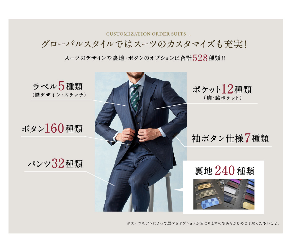 フェア情報のページです。国内最高峰のオーダースーツを東京・大阪・名古屋でコスパ価格で販売。 ジャストフィットするオーダースーツならグローバルスタイルへ。お客様の要望に合わせたオーダーシャツ、オーダーシューズなども取り扱っております。