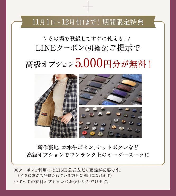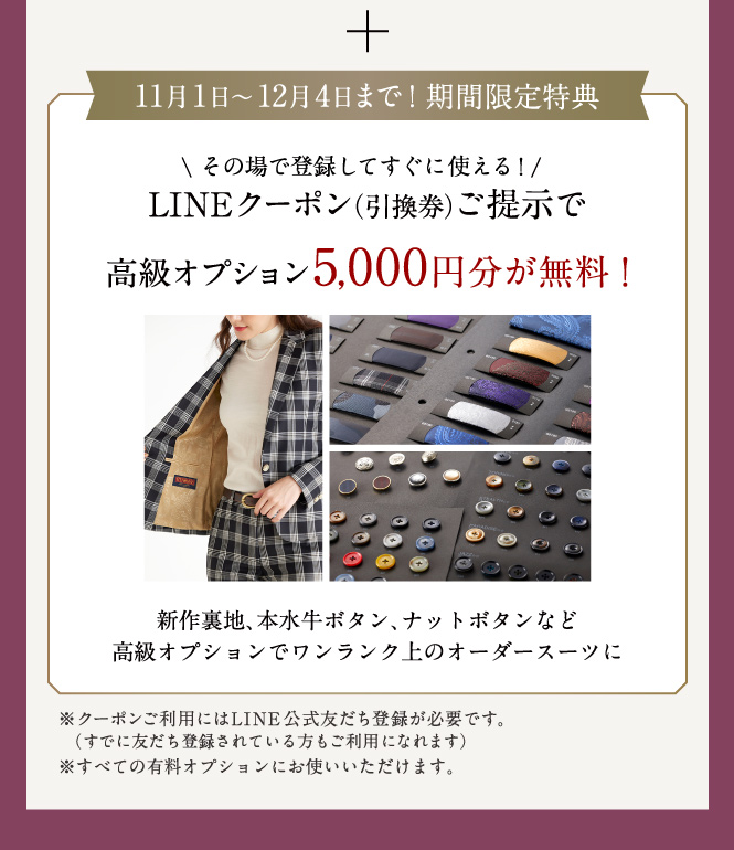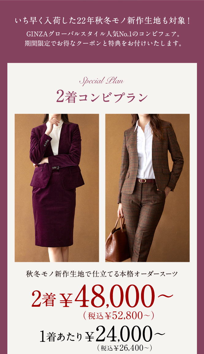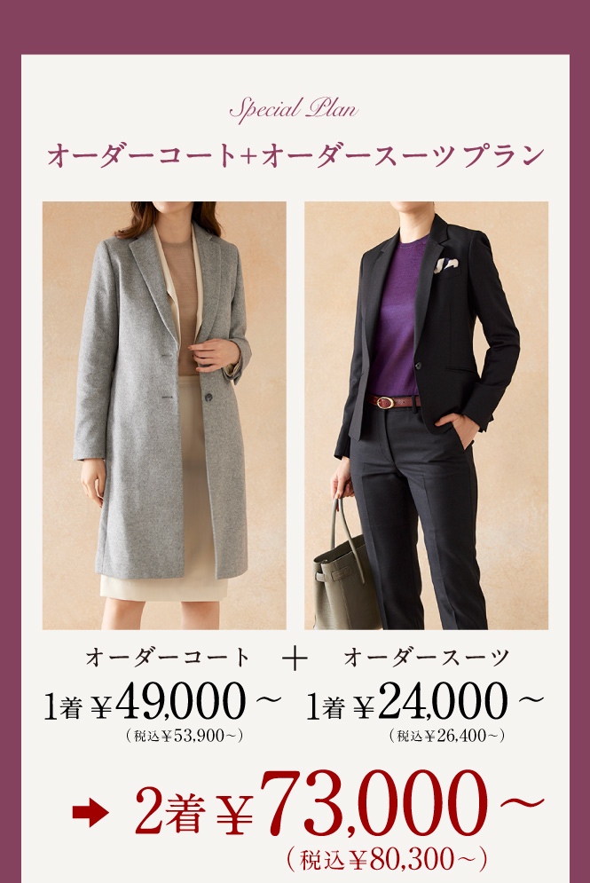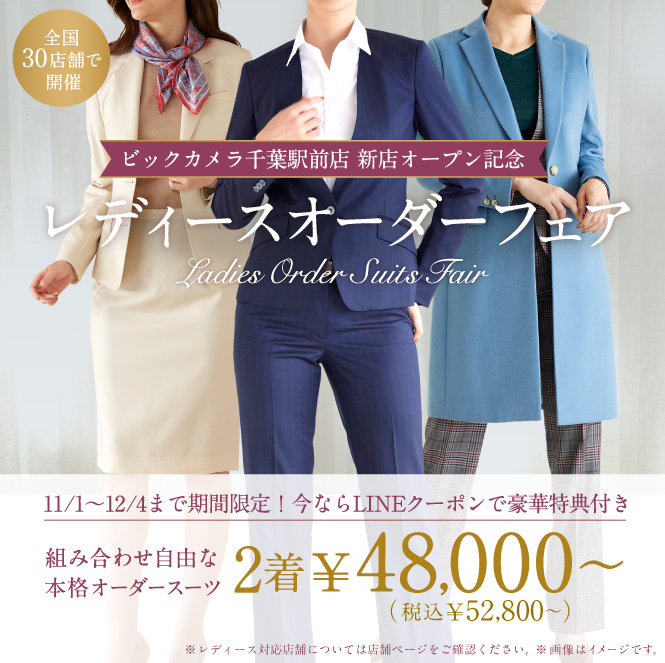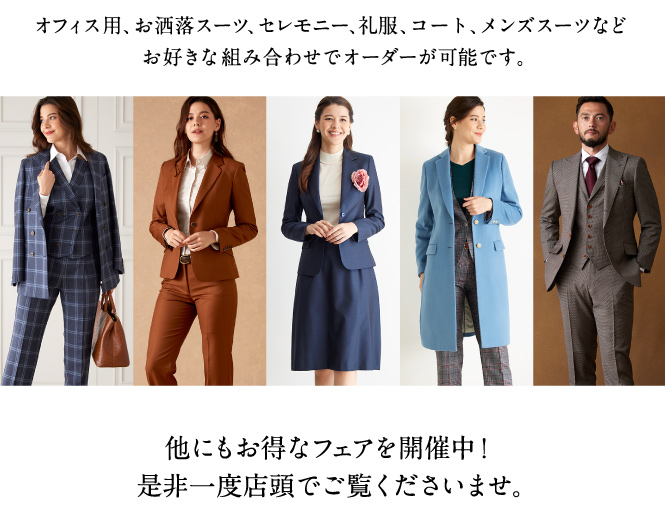 ≪全店対象≫豪華2,000円OFFクーポン付でレディースオーダースーツがお得に!