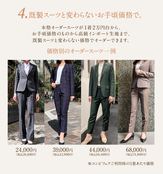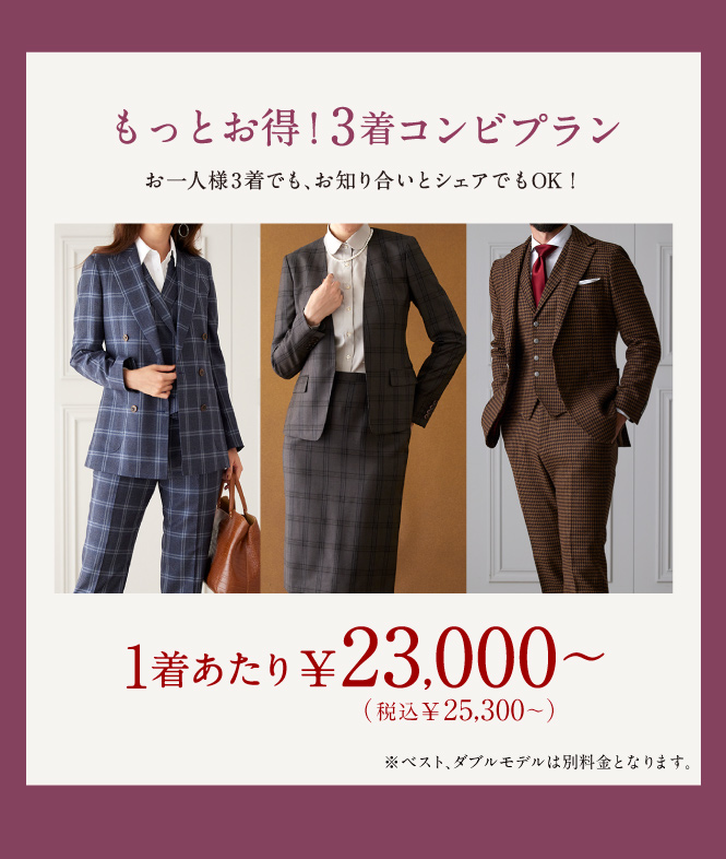 Q.友人と1着ずつのオーダーや、メンズスーツと1着ずつの組み合わせでも「コンビ価格」は適用されますか?