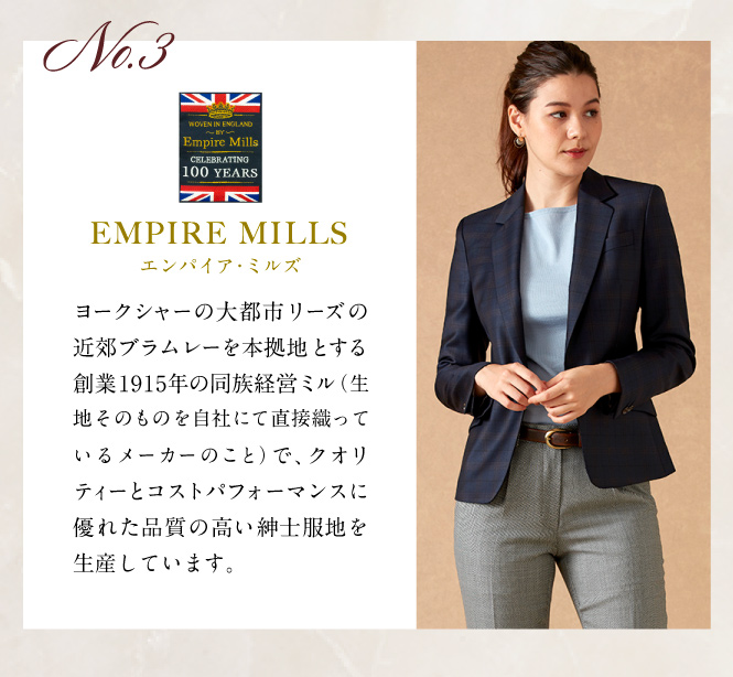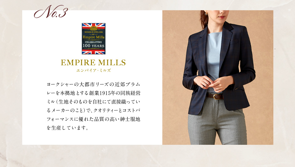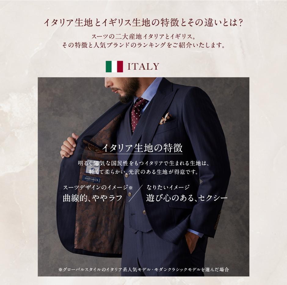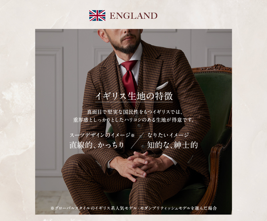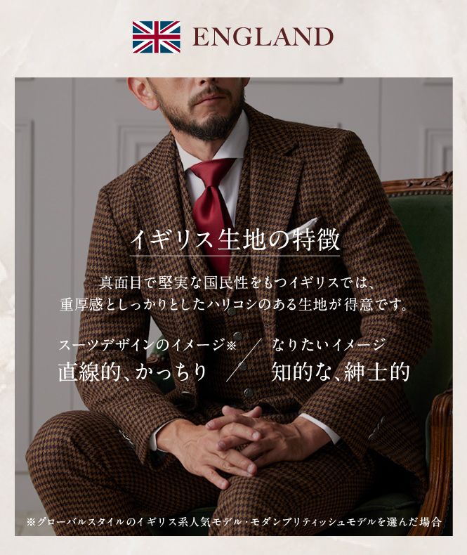 従来からある重厚な英国風仕立てを アレンジして薄めのパットやソフトな毛芯を用いています。 デザイン的にも高めの釦位置や強調された 裾のカッタウェイライン、スラントやチェンジポケットなど ブリテッシュスタイルの新しい息吹を体感して下さい。