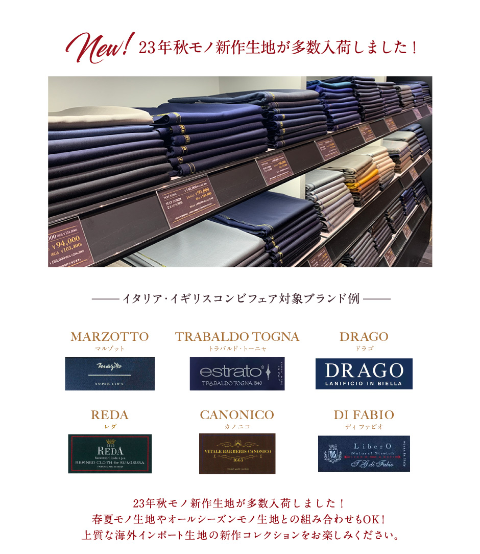 【年内最後!】CANONICO/MARZOTTOなどイタリア生地も多数/人気インポート生地がお得なクーポン付!
