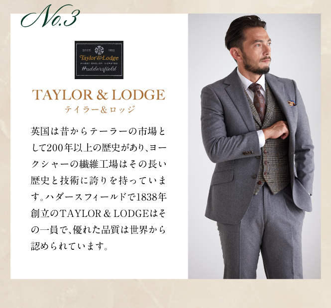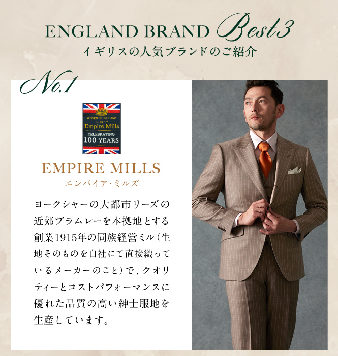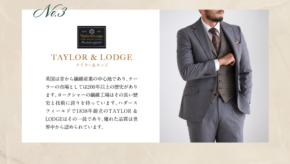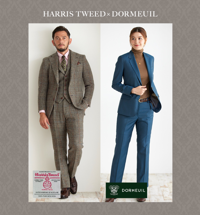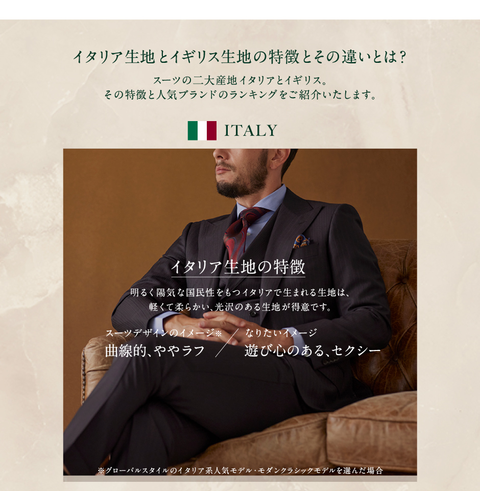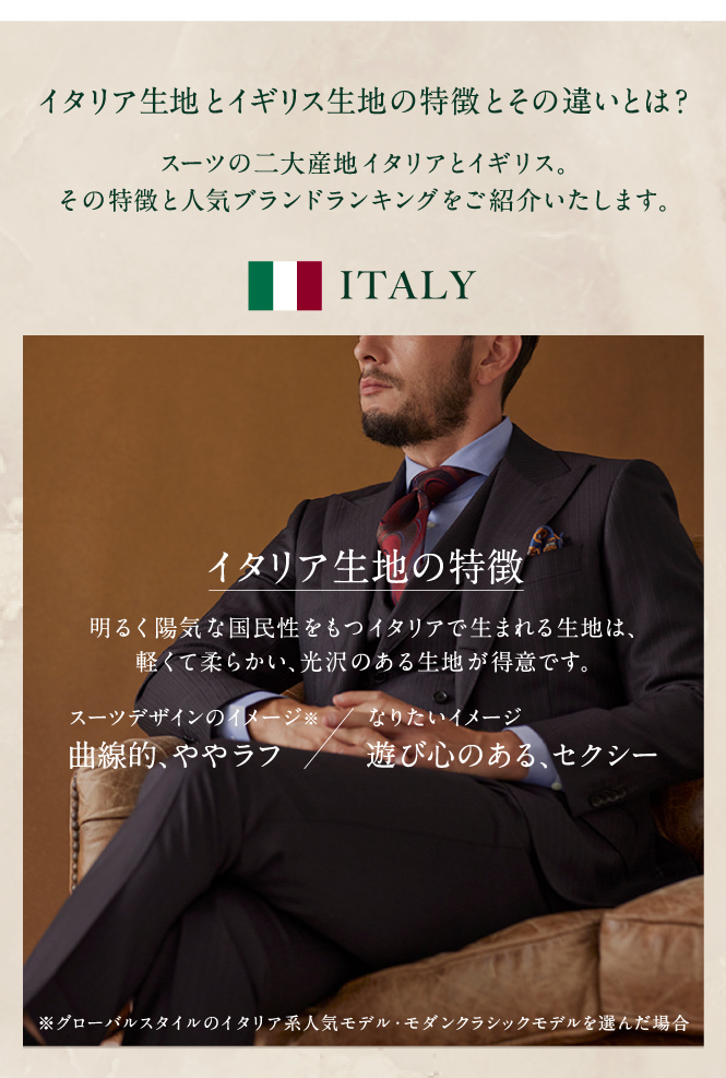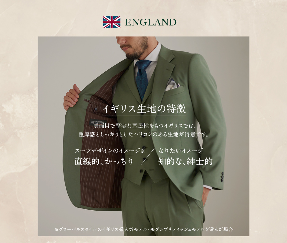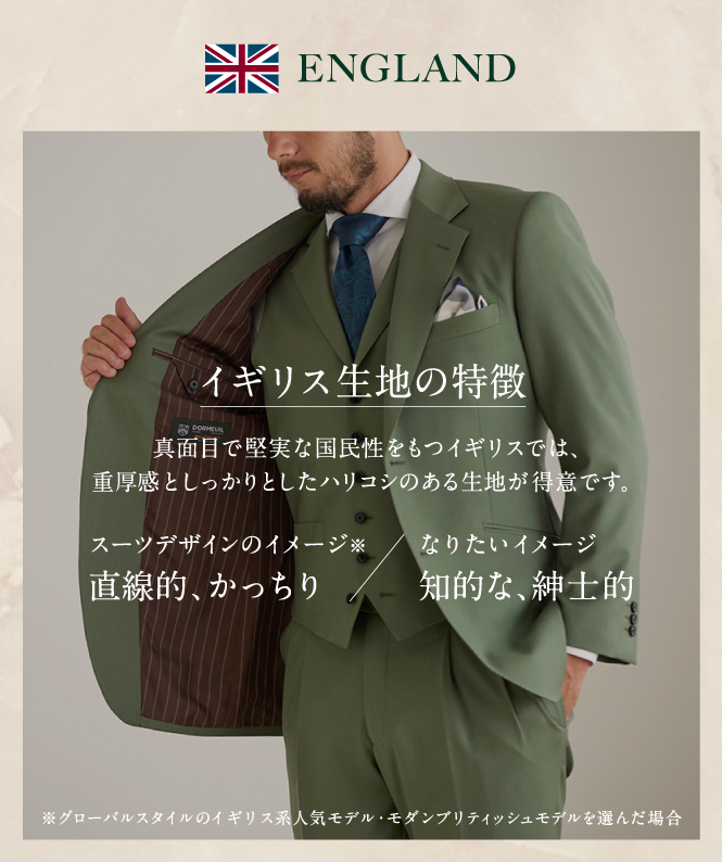 従来からある重厚な英国風仕立てを アレンジして薄めのパットやソフトな毛芯を用いています。 デザイン的にも高めの釦位置や強調された 裾のカッタウェイライン、スラントやチェンジポケットなど ブリテッシュスタイルの新しい息吹を体感して下さい。