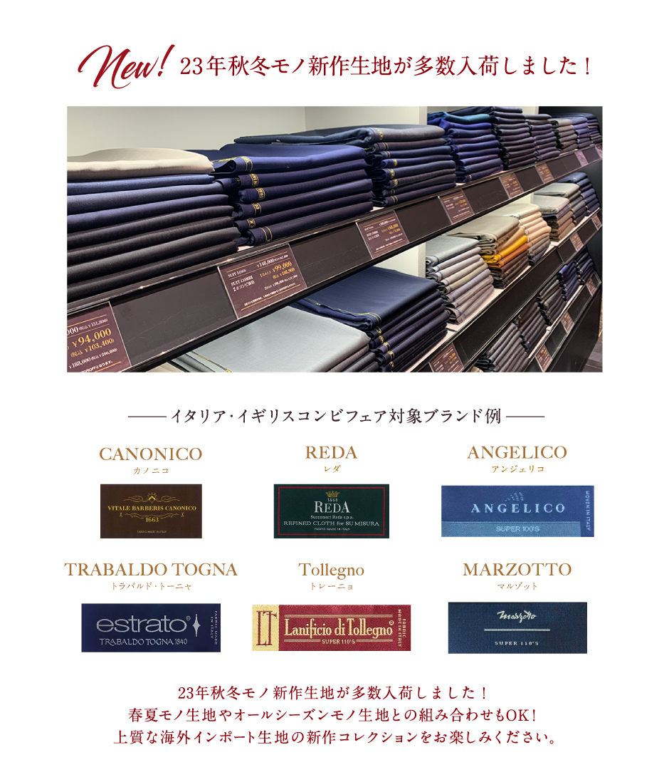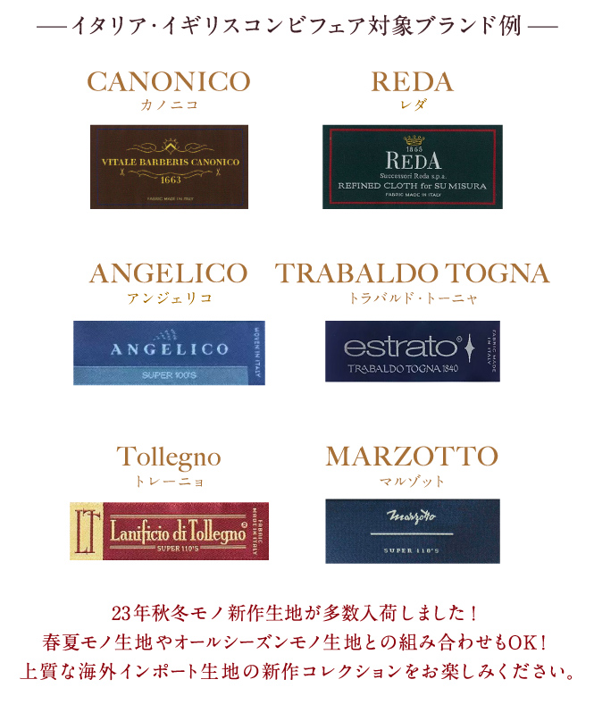 【年内最後!】CANONICO/MARZOTTOなどイタリア生地も多数/人気インポート生地がお得なクーポン付!
