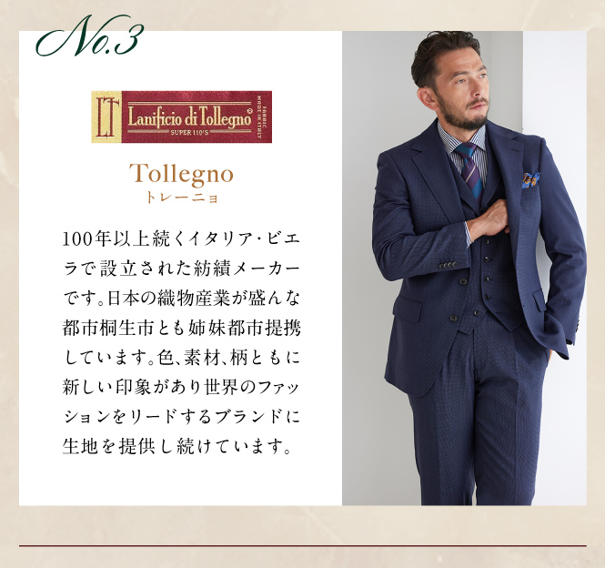 ハイゴージ、9.5cm幅のワイドピークドラペルが70年代のコンチネンタルスタイルを彷彿させる男性らしさを強調し、現代的な仕立ての軽さやタイト感あるシルエットによりクラシックとモダンの絶妙なバランス感を生み出しています。