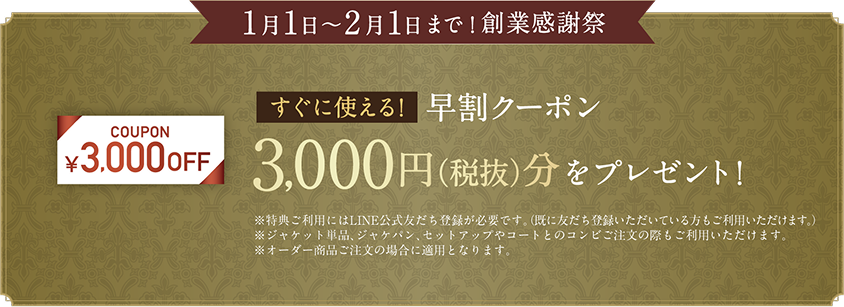 オーダージャケット1着 ¥32,000〜 (税込¥35,200〜)