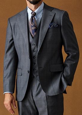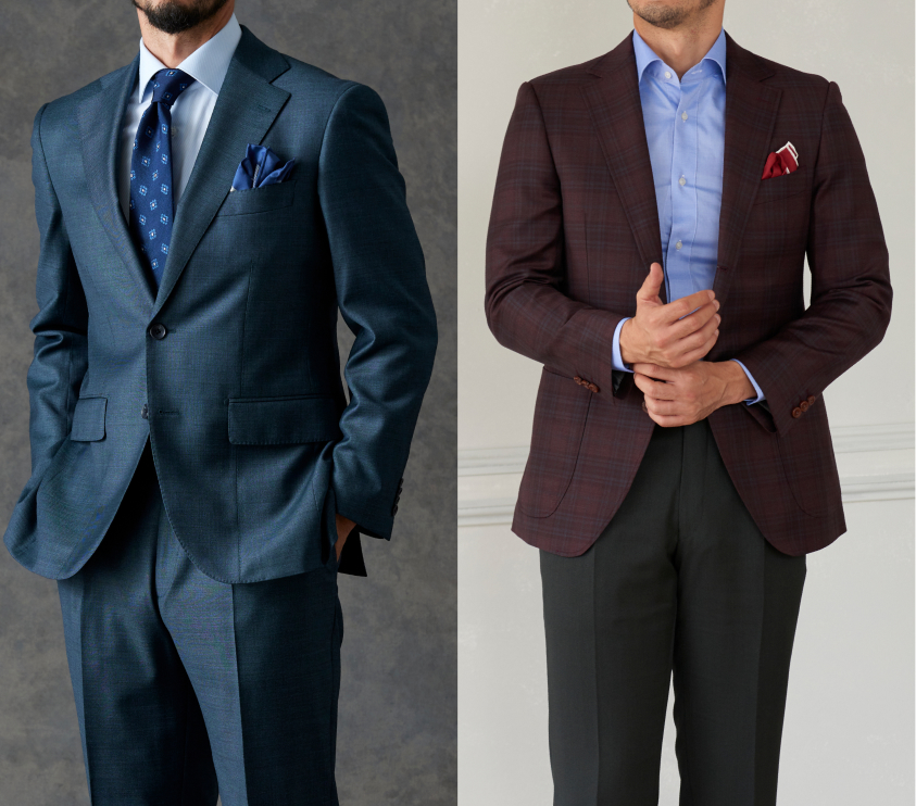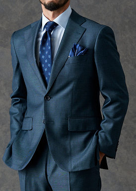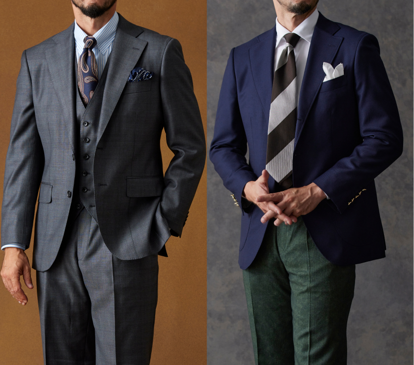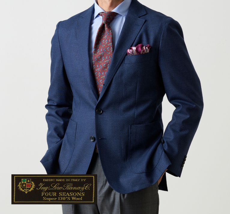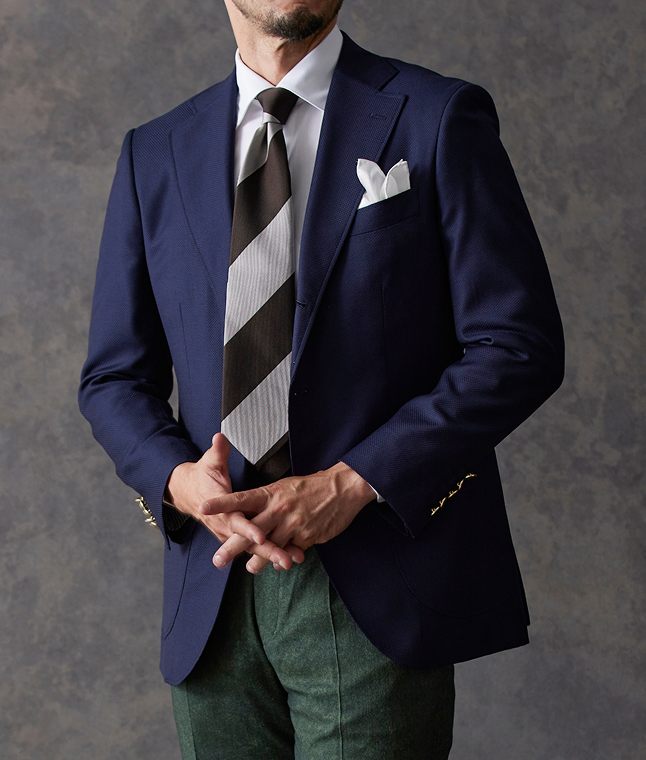 従来からある重厚な英国風仕立てを アレンジして薄めのパットやソフトな毛芯を用いています。 デザイン的にも高めの釦位置や強調された 裾のカッタウェイライン、スラントやチェンジポケットなど ブリテッシュスタイルの新しい息吹を体感して下さい。