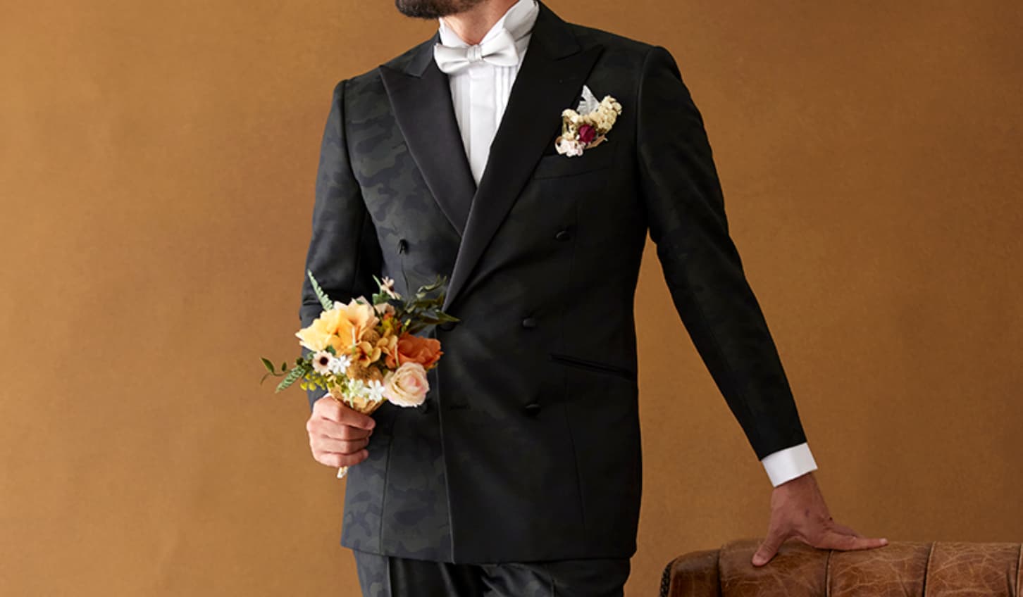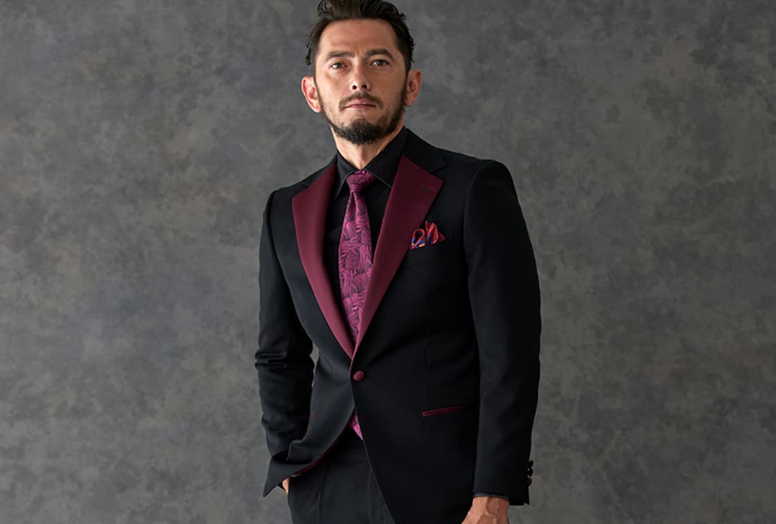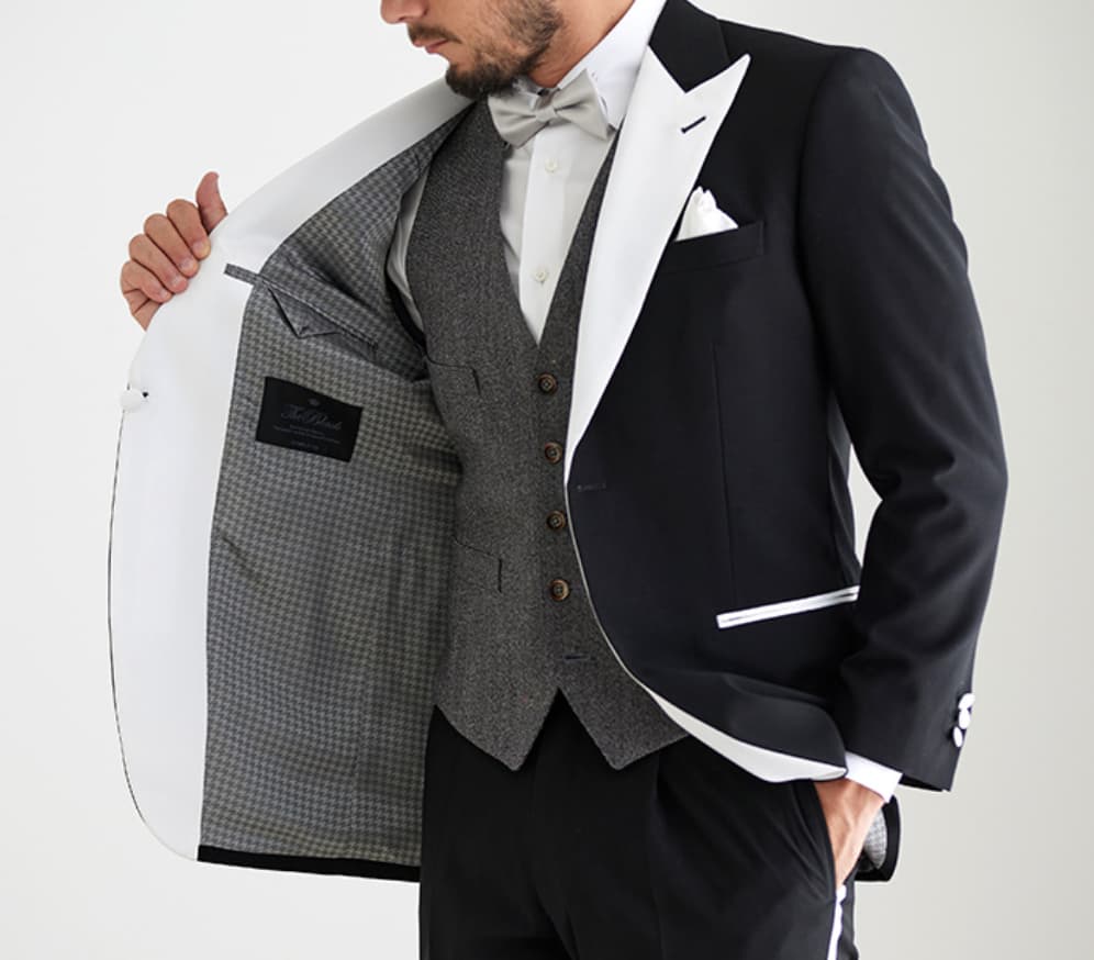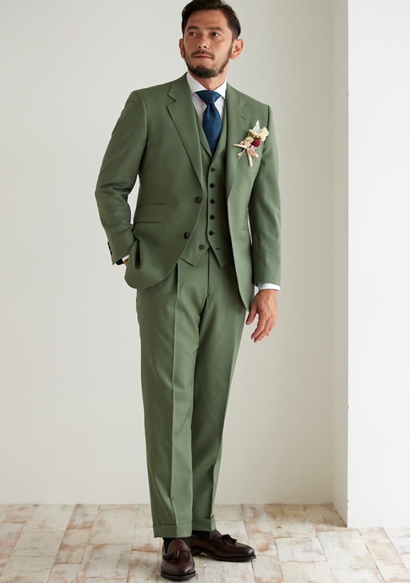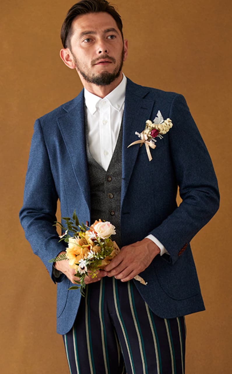 また、新郎の肩幅が比較的広めのため、サイズ感が完璧にフィットした
