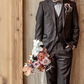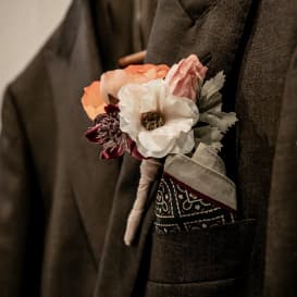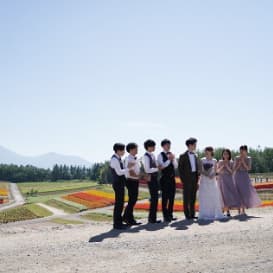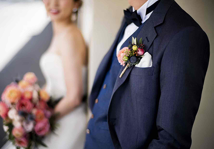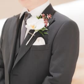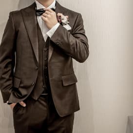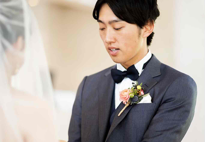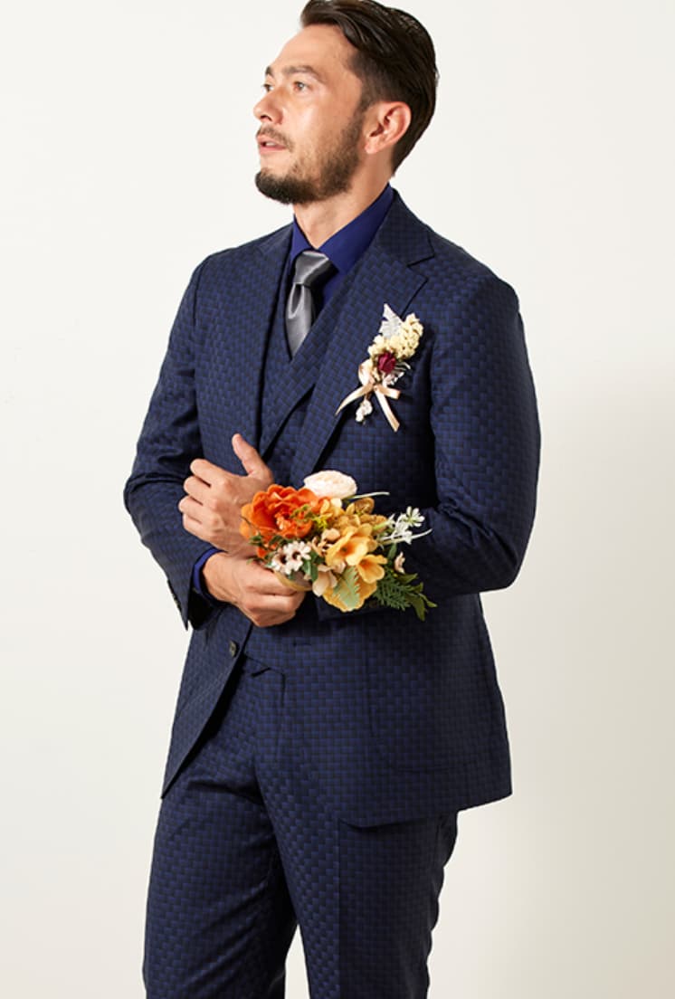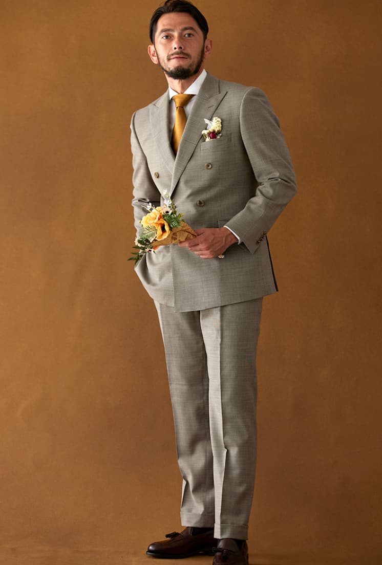 また、新郎の肩幅が比較的広めのため、サイズ感が完璧にフィットした