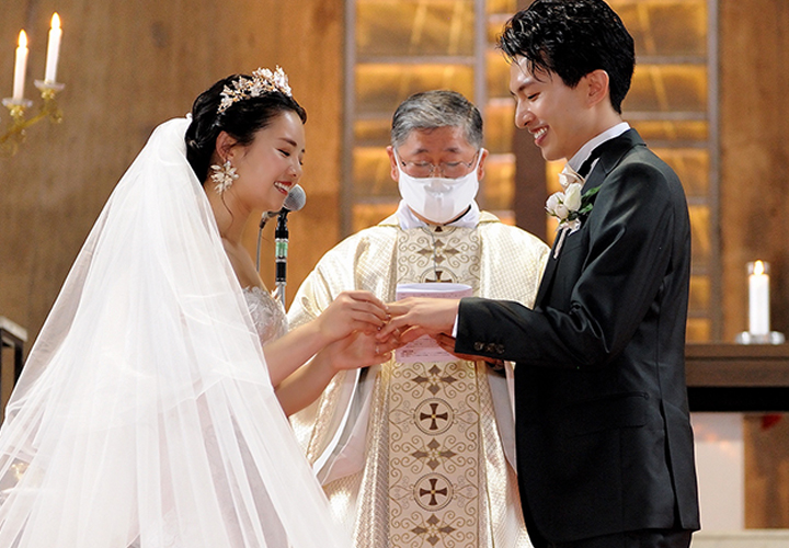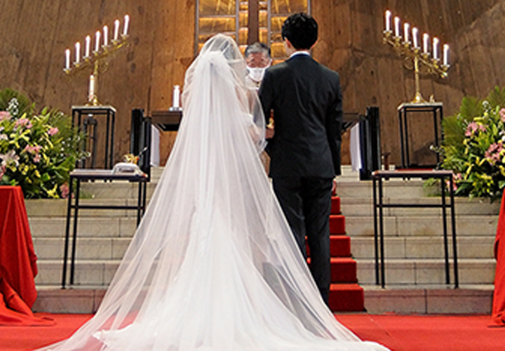 建築美に魅せられて「東京カテドラル教会」での挙式を決めたというお客様。