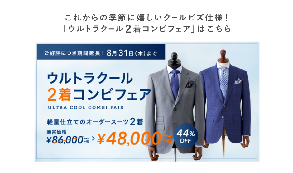 【人気フェア!!】 オーダースーツ2着が48,000円〜 ≪37%OFF≫ 季節モノが自由に選べる!