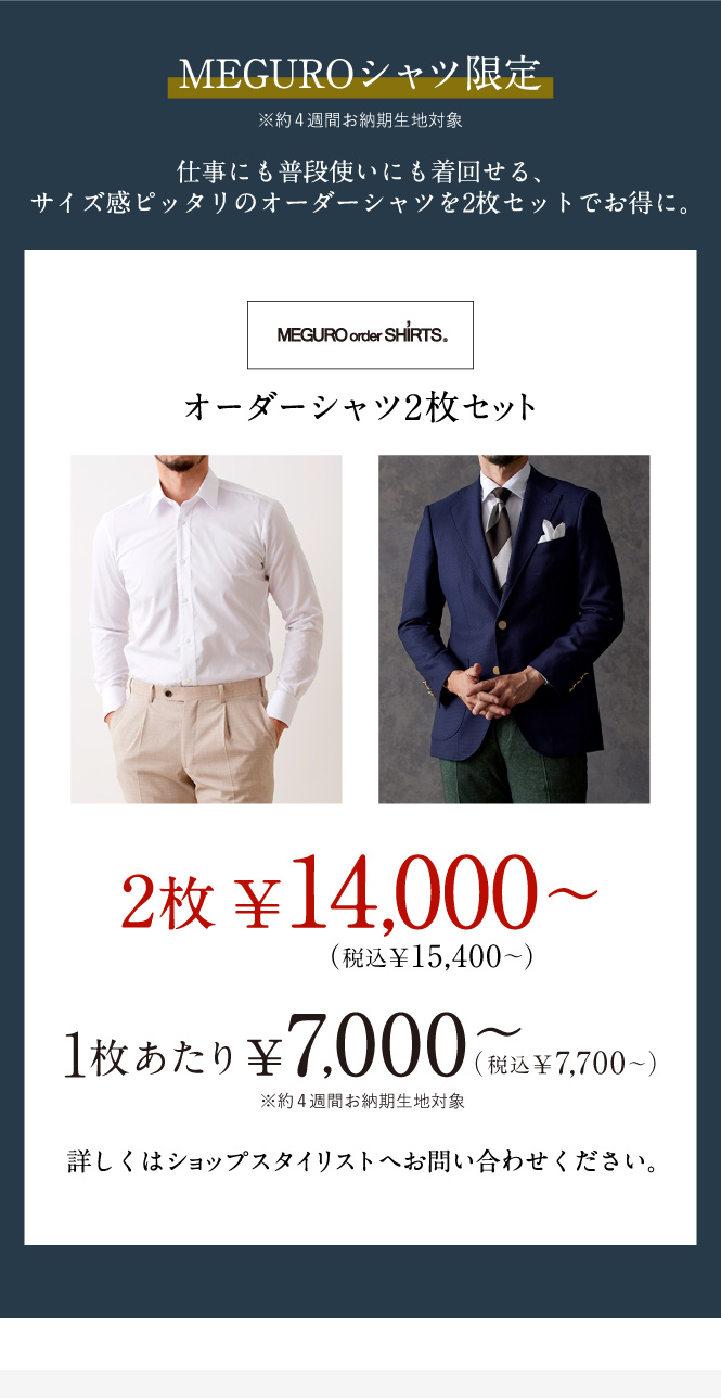 【MEGUROシャツ限定】サイズ感抜群のオーダーシャツが2枚セットでお得に!