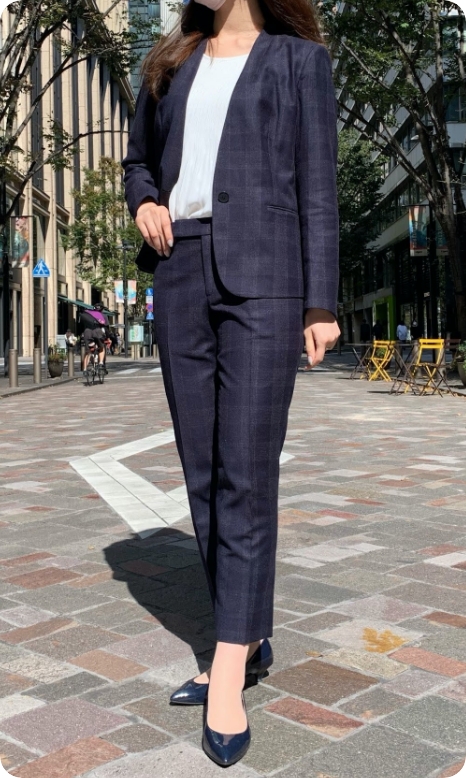インターンシップ用にスーツを検討していたところ、就活はもちろん入社後も着用できるカラーとデザインに惹かれて購入しました。