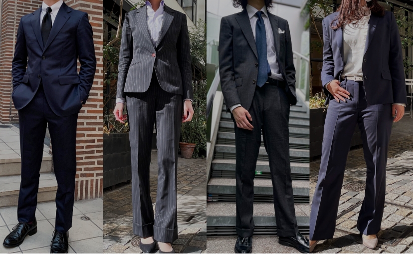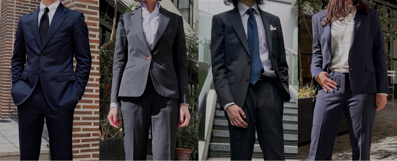 定番なカラー(ブラック、チャコールグレー、ダークネイビー)はもちろん、ストライプや光沢があるスーツなら長く着用できます。