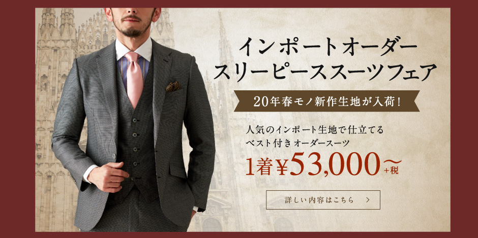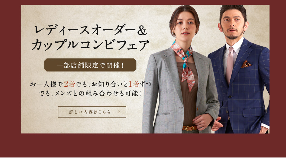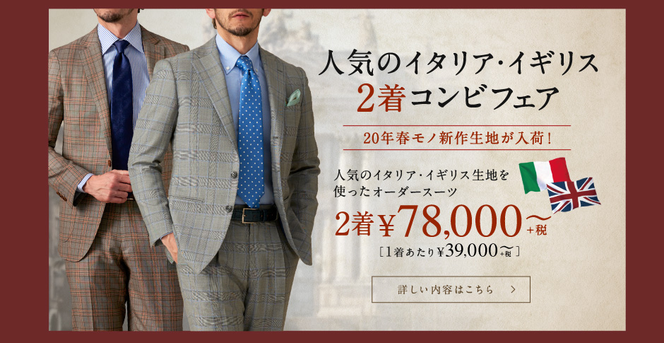 フェア情報のページです。グローバルスタイル(Global Style)では、本格オーダースーツが1着2万円台~!約5,000種類の生地をリーズナブルな価格でご用意しております。東京都・神奈川県(横浜)・埼玉県(大宮)・千葉県・静岡県・愛知県(名古屋)・大阪府(梅田/なんば)・奈良県・京都府・兵庫県(神戸)・広島県・福岡県(天神/博多/北九州)・北海道(札幌)・宮城県(仙台)・熊本県など全国40店舗に展開。