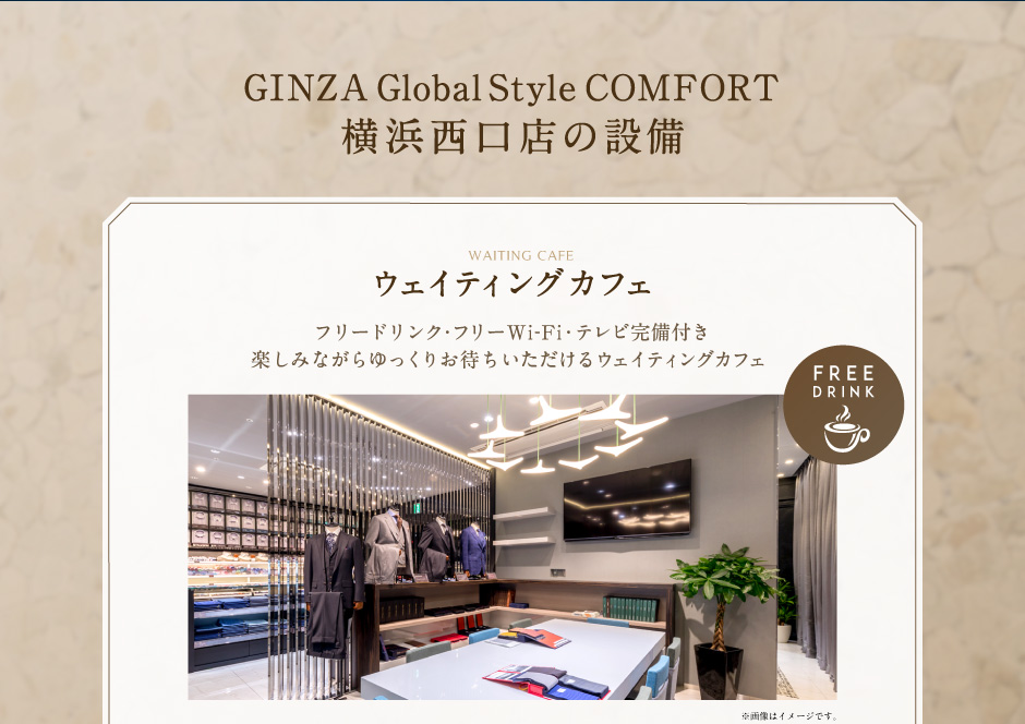 オーダースーツを快適にお作りいただくためのグローバルスタイル独自のサービスです。無料でご使用いただけますのでお気軽にご予約ください。