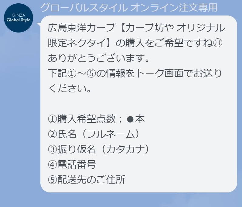 ①下記ボタンより【オンライン注文専用】のグローバルスタイル公式LINEを友だち追加