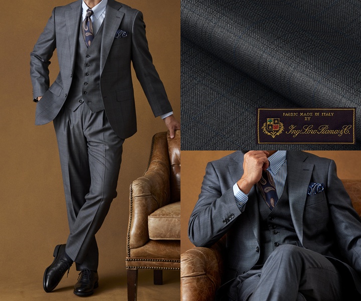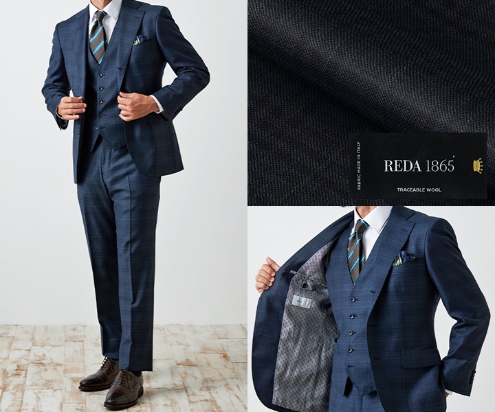 上質なクオリティと実用性の高さを兼ね備えたイタリア生地ブランド。レダからは深みのあるネイビーチェックをチョイス。落ち着いた印象の中にも上品さと知的さを感じさせ「気負わず着られる上質さ」を求める方におすすめのスリーピース生地です。