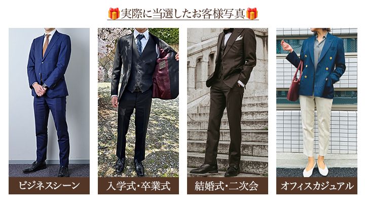 ●ギフト券:最大1名様/シャツお仕立て券:最大4名様/アプリへのポイント付与:最大15名様(合計20名様)