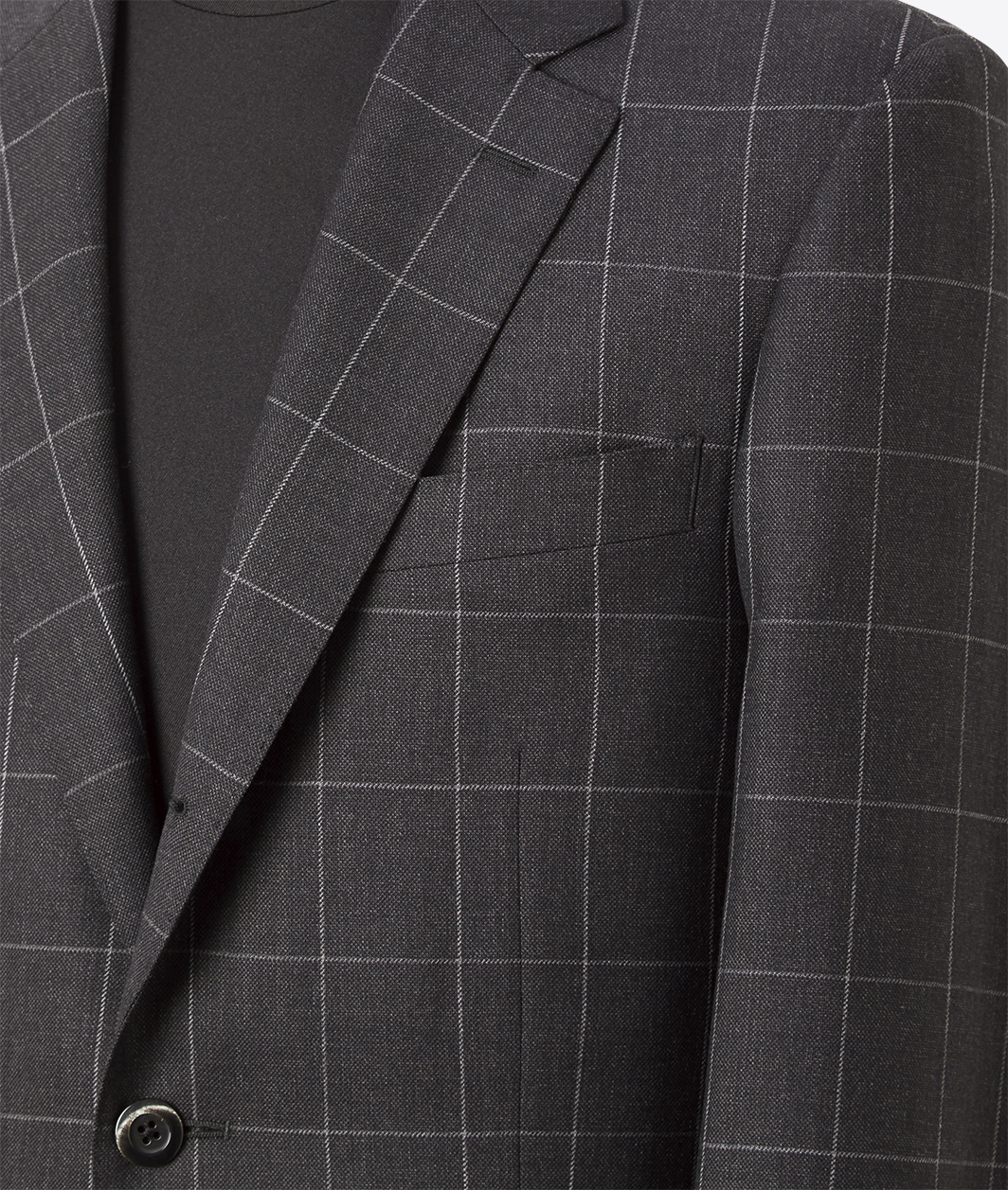 最も多くのビジネススーツに採用されているのがボタン4個。ビジネススーツで迷ったら4個がおすすめです。