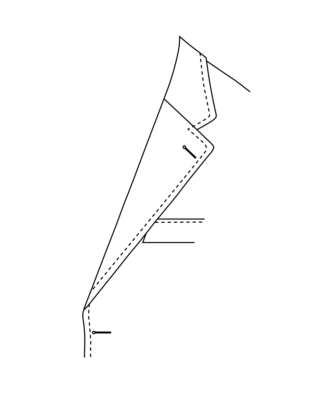 乗馬用のジャケットとして採用されたデザイン。斜め(スラント)にすることで、シャープな印象になります。