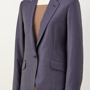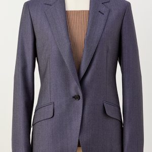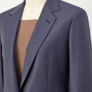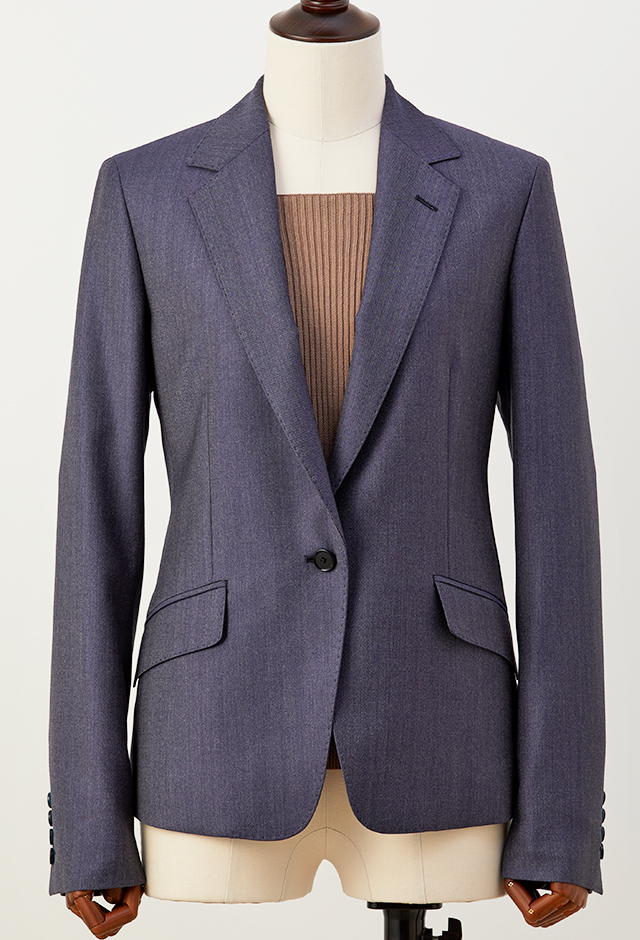 美しい発色と高級感溢れる光沢が特徴の「チェルッティ」で仕立てたスーツです。ブルーグレーカラーにさらっとした風合いの無地のスタイルで、オールシーズン着用していただけます。ジャケットはテーラーギビングモデル(1つボタン)、ボトムスは定番のスカートで仕立てました。ジャケットオプションにはAMF(手縫い風のステッチ)でアクセントを入れました。ベージュの小物やパンプスで軽やかにまとめたコーデです。※生地在庫は変動いたしますのでご了承くださいませ。