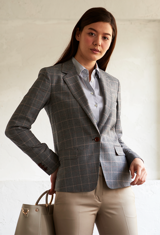 最高級ブランドに使われる素材を生み出すイタリアブランド「ルイージ・コロンボ」で仕立てたスーツです。落ち着きのあるライトベージュカラー。チェック柄はさり気ないピンクカラー。ジャケットとパンツを別々に組み合わせることでよりカジュアルな印象に仕上げることが出来ます。ジャケットはテーラーギビングモデル(1つボタン)、ボトムスは人気のテーパードパンツで仕立てました。ジャケットの袖は、オーダーならではの実際にボタンの開閉が可能な「本切羽」タイプ。ブルーシャツやベージュパンツでまとめた爽やかなコーデです。※生地在庫は変動いたしますのでご了承くださいませ。