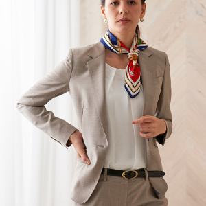 イタリアの高級生地ブランド「ゼニア」で仕立てたスーツです。トレンドのベージュカラーに、生地の織り模様が美しい無地のスタイルで、オールシーズン着用していただけます。ジャケットはテーラーギビングモデル(1つボタン)、ボトムスは人気のテーパードパンツで仕立てました。ジャケットオプションにはAMF(手縫い風のステッチ)でアクセントを入れました。ビビットなスカーフやブラックでメリハリのを持たせたコーデです。※生地在庫は変動いたしますのでご了承くださいませ。