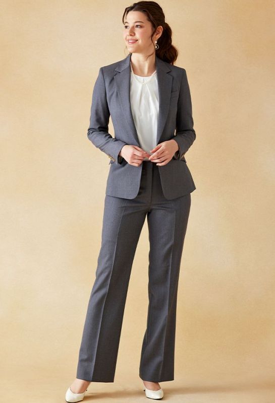 美しい生地を作り出す独自の製法を持つ「カルロ・バルべラ」で仕立てたスーツです。レディースで注目度の高いダークグレーカラーにストライプを組み合わせたスタイルで、オールシーズン着用していただけます。ジャケットはテーラーギビングモデル(1つボタン)、ボトムスはクールなセミフレアパンツで仕立てました。ジャケットのポケットは斜めにすることでシャープな印象に。ピンクのインナーを差し色に、モノトーンでまとめたビジネスシーンにも最適なコーデです。※生地在庫は変動いたしますのでご了承くださいませ。