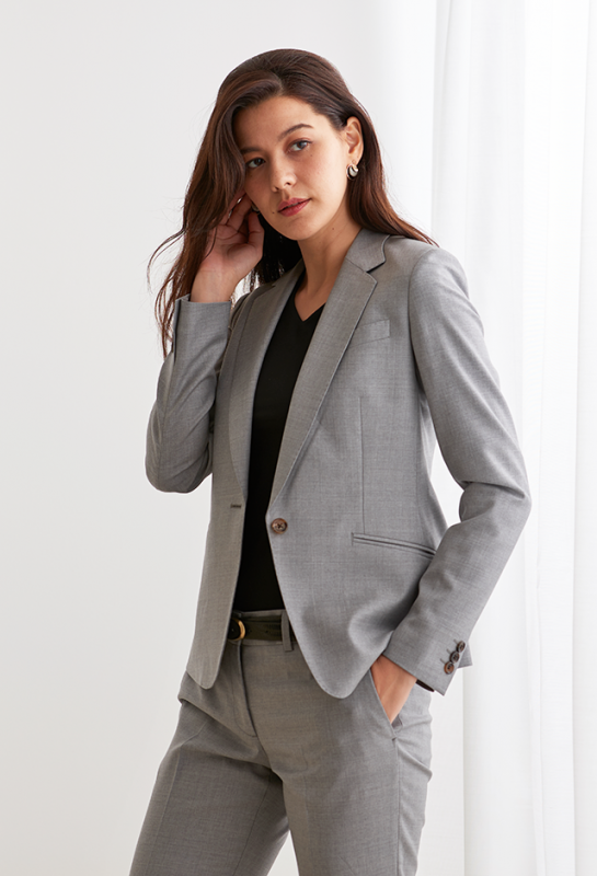 ストレッチ性の高い生地が大好評のイタリアブランド「トラバルド・トーニャ」で仕立てたスーツです。レディースで注目度の高いダークグレーカラーにシンプルな無地のスタイルで、オールシーズン着用していただけます。ジャケットはテーラーギビングモデル(1つボタン)、ボトムスは人気のテーパードパンツで仕立てました。裏側には深みのあるバープルカラーをチョイス。同系色のグレーインナーと組み合わせて、大人の雰囲気を醸し出すワントーンコーデです。※生地在庫は変動いたしますのでご了承くださいませ。