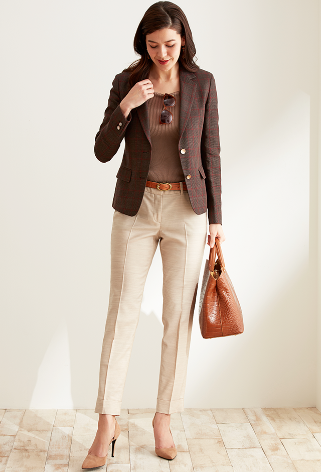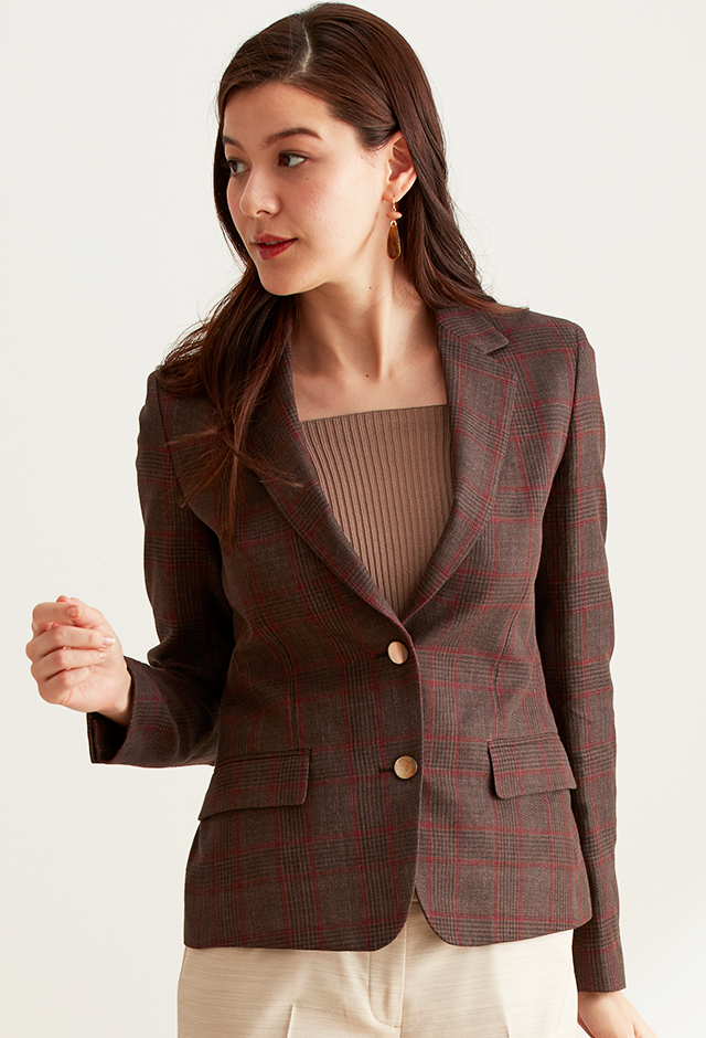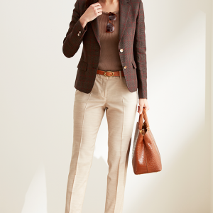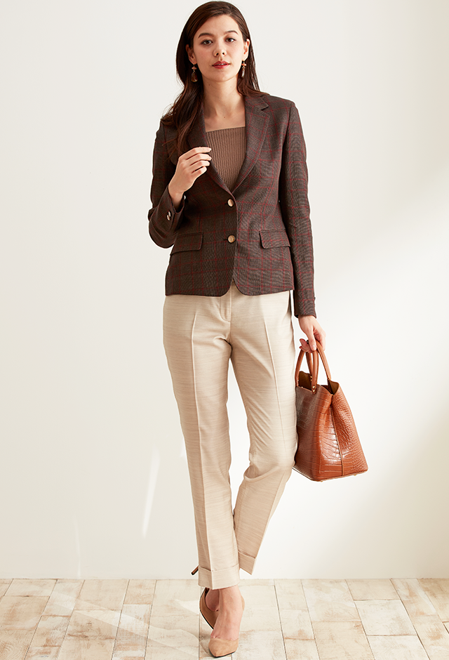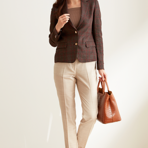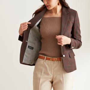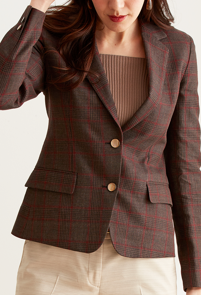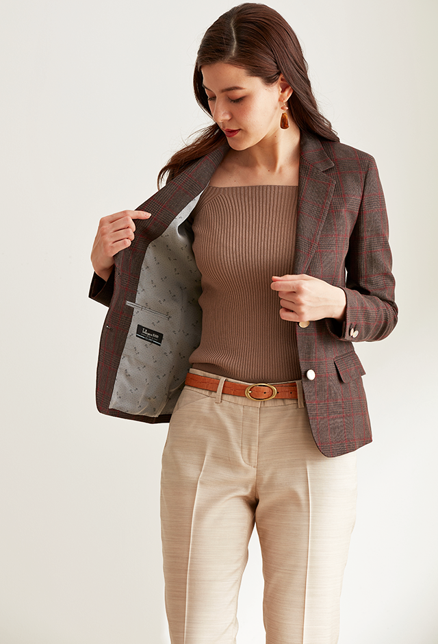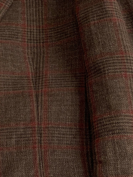 コストパフォーマンスの高さからも人気の高い「トレーニョ」で仕立てたスーツです。ブラウン×レッドのお洒落なチェック柄が入ったスタイルで、オールシーズン着用していただけます。ジャケットはテーラーギビングモデル(2つボタン)、ボトムスは人気のテーパードパンツで仕立てました。ライトグレーに小花柄の裏地をチョイス。ボタンはキラキラと輝きのある貝ボタン。カジュアルなコーデなので、オンだけでなくオフでも着回し易い仕上がりです。※生地在庫は変動いたしますのでご了承くださいませ。