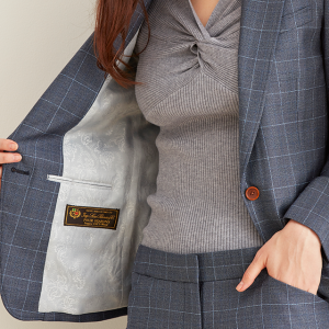 世界中のセレブリティから支持を得ているラグジュアリーブランド「ロロ・ピアーナ」で仕立てたスーツです。珍しいブルーグレーカラーにシンプルなチェック柄が入ったスタイルで、オールシーズン着用していただけます。ジャケットはテーラーギビングモデル(1つボタン)、ボトムスはクールなセミフレアパンツで仕立てました。裏地には人気の高いペイズリー柄。ジャケット袖はスリット(切り込みが入った仕様)ですっきりと。同系色のインナーで統一感のある洗練されたコーデです。※生地在庫は変動いたしますのでご了承くださいませ。