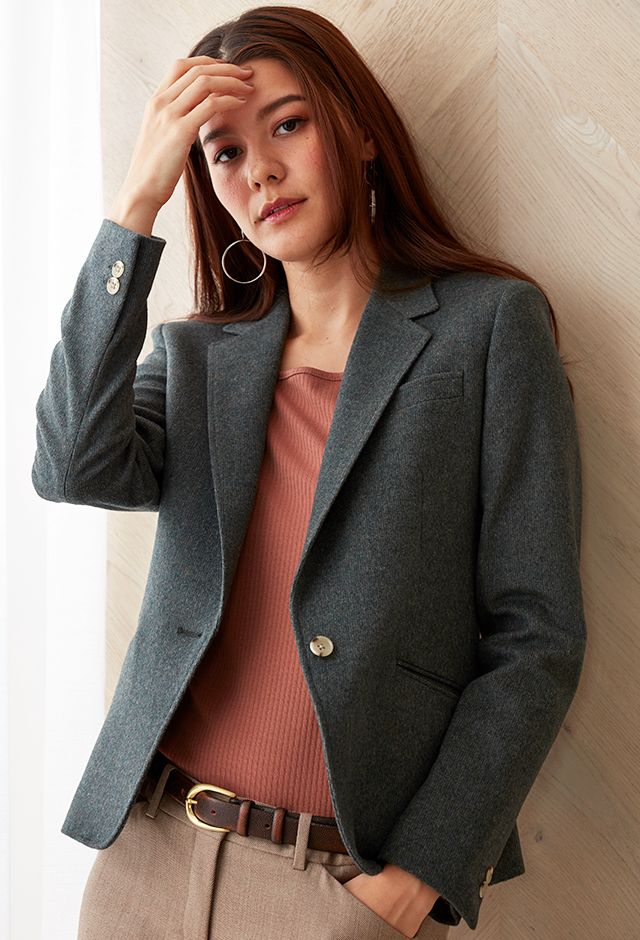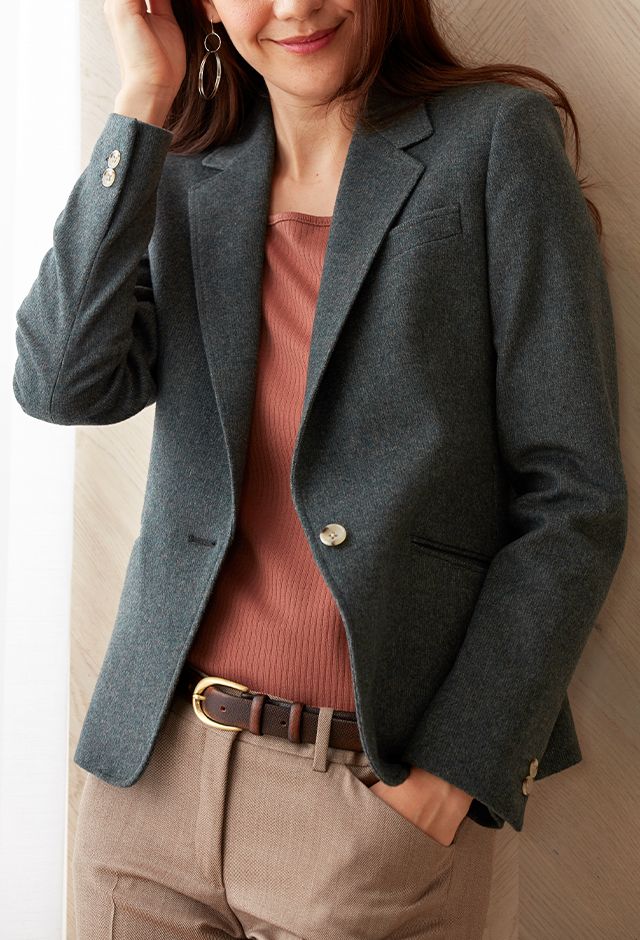 最高級の原材料を使用することを徹底し、世界的に評価される品質を保つ「ピアチェンツァ」で仕立てたジャケットです。起毛素材で暖かみのある生地感と流行のカーキのスタイルで、秋冬シーズンの生地になります。ジャケットはテーラーギビングモデル(1つボタン)、ボトムスはクールなセミフレアパンツで仕立てました。ジャケットにはミシンステッチを入れてステッチを強調。カーキにベージュを合わせてナチュラルな雰囲気に仕上げました。※生地在庫は変動いたしますのでご了承くださいませ。