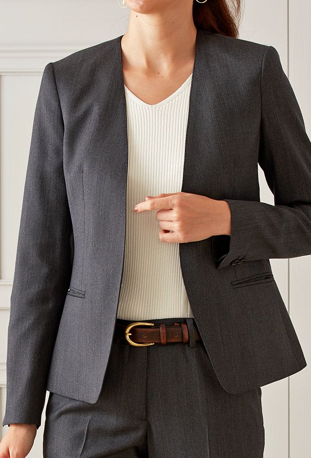 雨が多く多湿な気候を有する市場においても絶大な評価を獲得している「ドラゴ」で仕立てたスーツです。滑らかな質感が美しいグレーと無地を組み合わせたスタイルで、オールシーズン着用していただけます。ジャケットはノーカラーモデル(ホック)、ボトムスは人気のテーパードパンツで仕立てました。パンツのポケットは、出し入れがし易いポピュラーな斜めタイプをチョイス。シンプルな小物と合わせたモノトーンコーデです。※生地在庫は変動いたしますのでご了承くださいませ。
