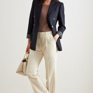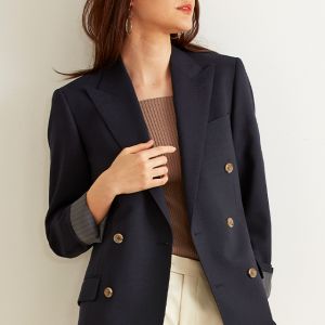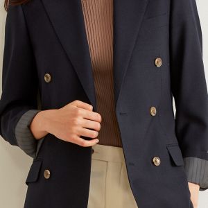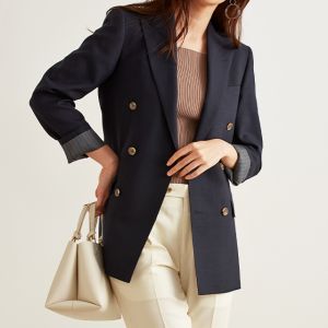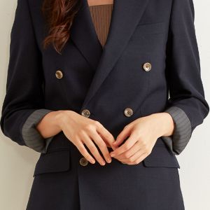 フランネルの創設者として公認されているイギリスの高級ブランド「フォックスブラザーズ」で仕立てたスーツです。光沢感を抑えた質感の生地にネイビーカラーを組み合わせたスタイルで、春夏シーズンの生地になります。英国の”今”を感じさせるモダンブリティッシュモデル(ダブル)でジャケットを仕立てました。ジャケットの襟は、ダブルスーツで多く採用されるピークドラペルをチョイス。人気の紺ブレスタイルでカジュアルに仕上げました。※こちらはメンズのモデルでお仕立てしたスーツになります。※生地在庫は変動いたしますのでご了承くださいませ。