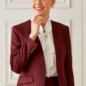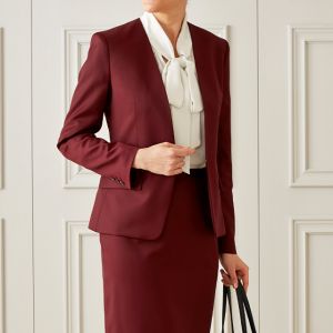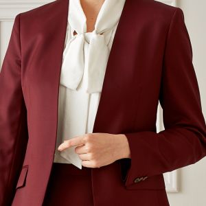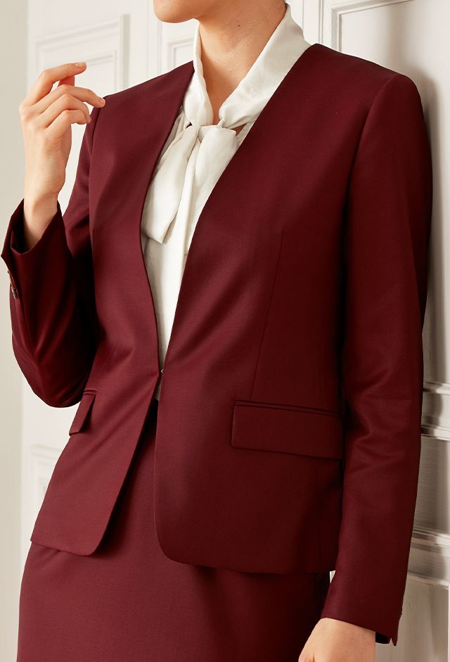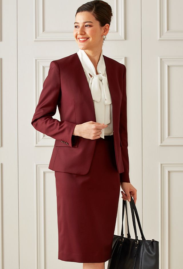 クラシカルからファンシーなデザインまで幅広く生み出すイタリアブランド「レダ」で仕立てたスーツです。滑らかな質感の生地に印象的なワインレッドレッドカラーのスタイルで、オールシーズン着用していただけます。ジャケットはノーカラーモデル(ホック)、ボトムスは定番のスカートで仕立てました。ポケットは最もオーソドックスなフラップが付いた平行タイプを採用。白、赤、ブラックで色気のある3色コーデに仕上げました。※生地在庫は変動いたしますのでご了承くださいませ。
