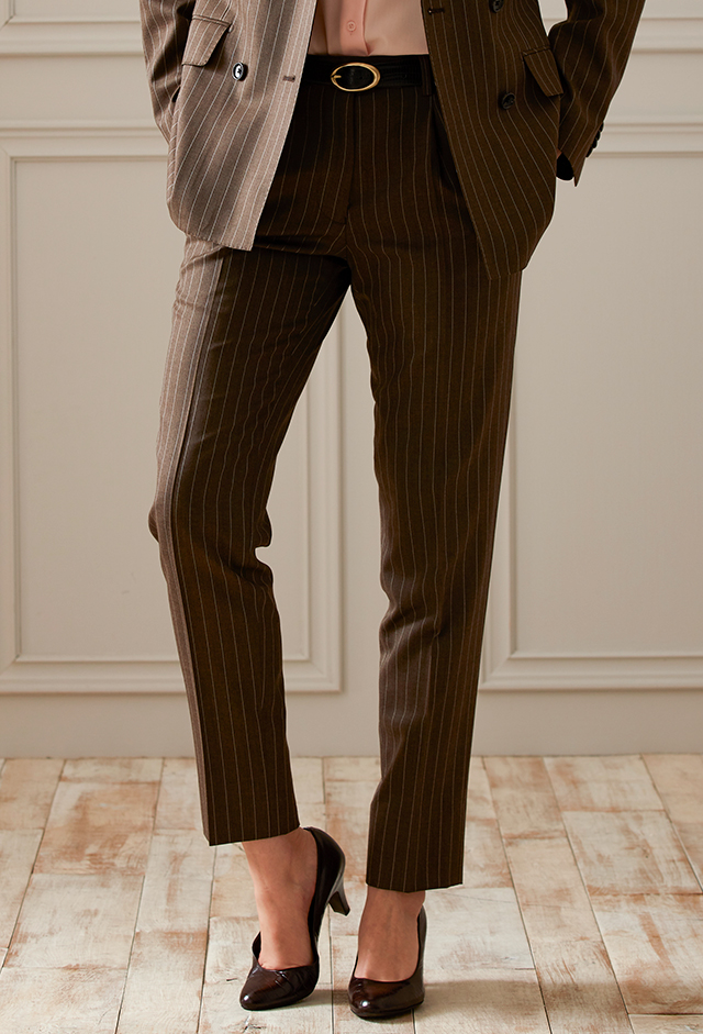 オーダースーツ専門店GlobalStyleで取り扱っている「ブラウンスーツ・ストライプのコーディネート(HOLLAND&SHERRY)|594416|スタイルブック(レディース)」の紹介ページです。本格オーダースーツが1着2万円台~!約5,000種類の生地をリーズナブルな価格でご用意しております。
