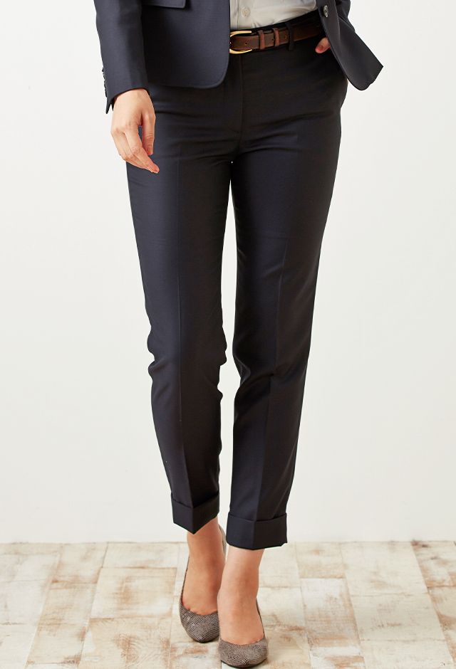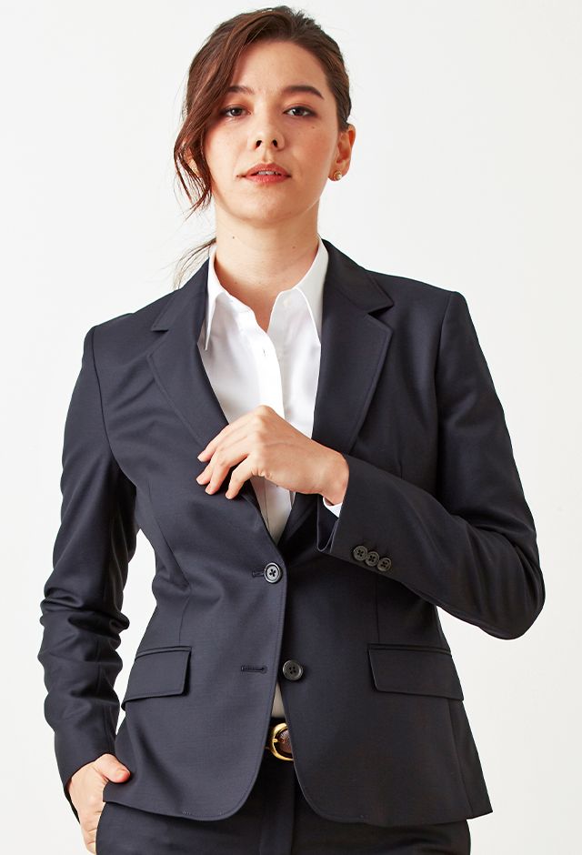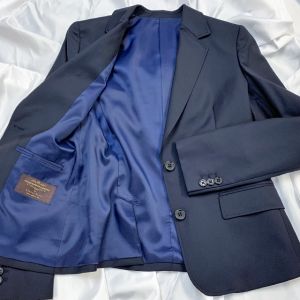高品質でコストパフォーマンスに優れたイタリアブランド「カノニコ」で仕立てたスーツです。人気のネイビーカラーに、使いやすい無地を組み合わせたスタイルでオールシーズン着用していただけます。ジャケットはテーラーギビングモデル(2つボタン)、ボトムスは人気のテーパードパンツで仕立てました。パンツの裾は、カジュアルな印象ながらビジネスシーンにも使えるダブルタイプ。白のワイシャツで合わせた大人の抜け感のあるコーデです。※生地在庫は変動いたしますのでご了承くださいませ。