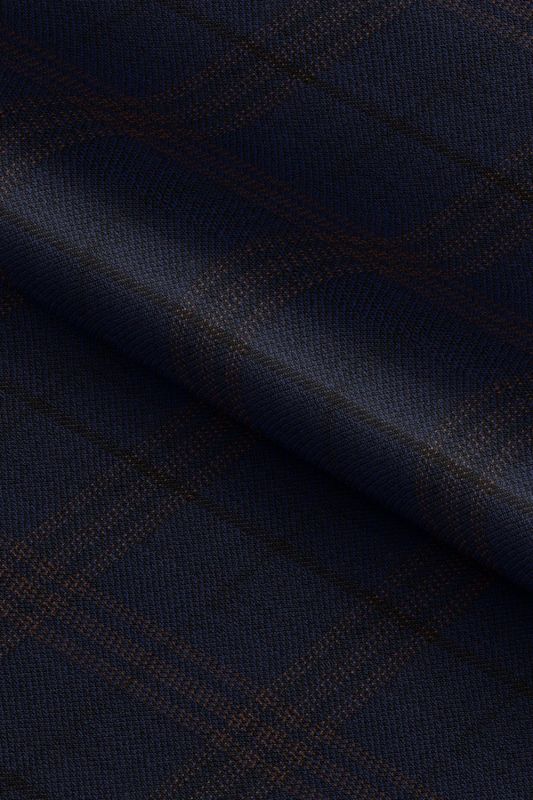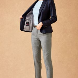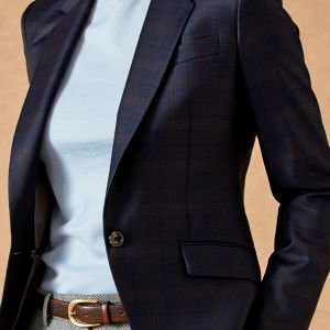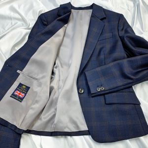 英国でクオリティーとコストパフォーマンスの高い生地を生産する「エンパイア・ミルズ」で仕立てたスーツです。ネイビー×ブラウンの王道配色のチェック柄でオールシーズン着用していただけます。ジャケットはテーラーギビングモデル(1つボタン)、ボトムスは人気のテーパードパンツで仕立てました。袖口のボタンは、4つが基本ですが2つをチョイスしカジュアル感をアップ。小物はブラウンで整え、グレーのテーパードを合わせた鉄板コーデです。※生地在庫は変動いたしますのでご了承くださいませ。