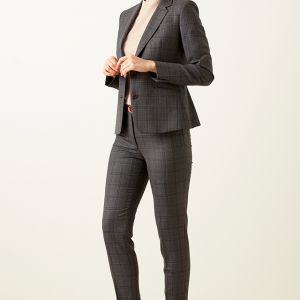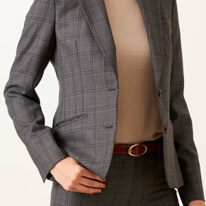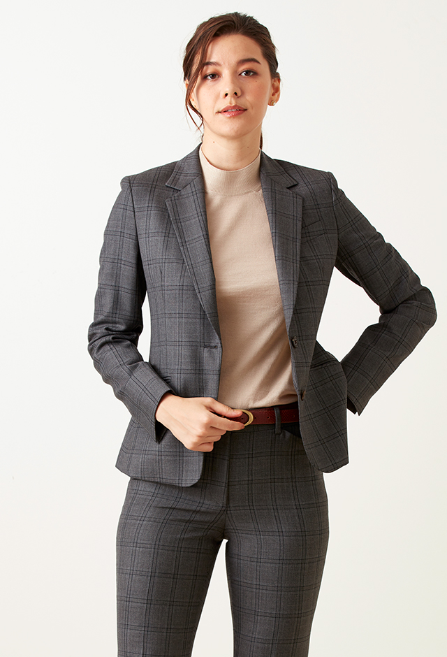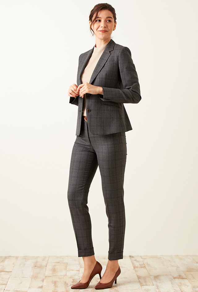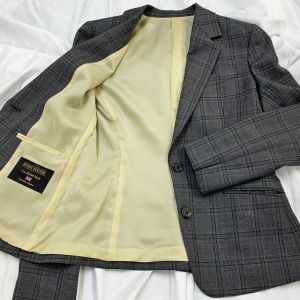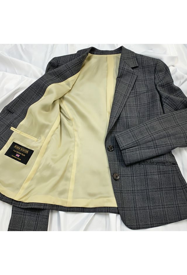 世界のアパレルメーカーやテーラーなどから品質を認められている「ジョン・フォスター」で仕立てたスーツです。ダークグレイッシュなチェック柄のスタイルでオールシーズン着用していただけます。ジャケットはテーラーギビングモデル(2つボタン)、ボトムスは人気のテーパードパンツで仕立てました。袖口にはスリット(切り込みが入った仕様)をチョイスしシルエットを美しく。ベルトや靴は濃いブラウンで色を締め、インナーはペールトーンのベージュでコントラストを出しました。※生地在庫は変動いたしますのでご了承くださいませ。