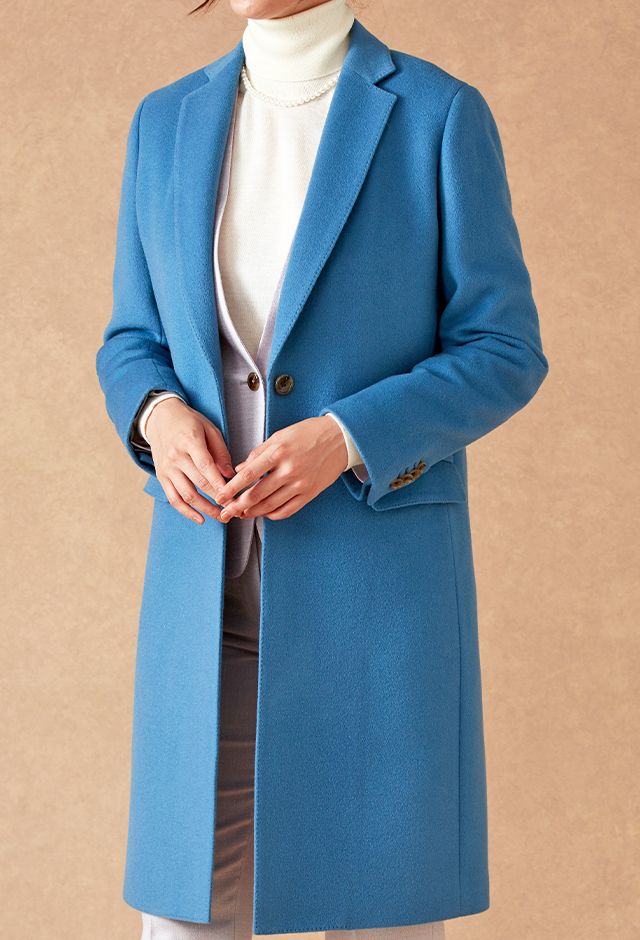 グローバルスタイルがセレクトした生地コレクションで仕立てたコートです。発色の良いブルーの無地のスタイルで、上品でありながらカジュアルにも合わせることができる歴史のあるチェスターコートモデルに仕立てました。ボタンは明るめの色柄をチョイスし、色合いをまとめました。中のスーツには、同系色だけでなく、ライトなピンクやグレーと幅広いアイテムと合わせることができるコートです。※画像はイメージです。実際の生地と若干風合いが異なることがございますので、店頭でご覧くださいませ。※生地在庫は変動いたしますのでご了承くださいませ。