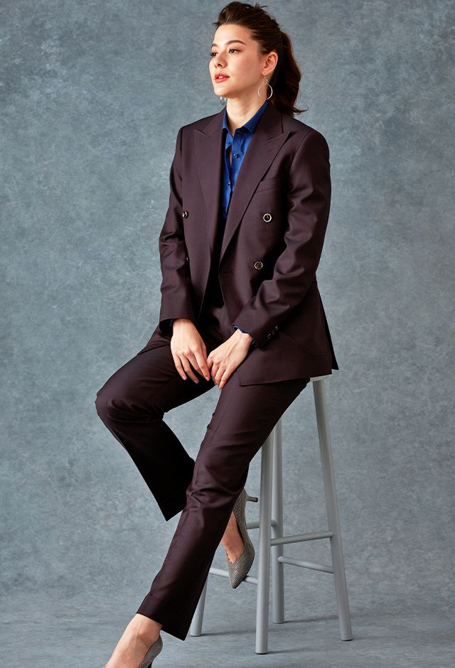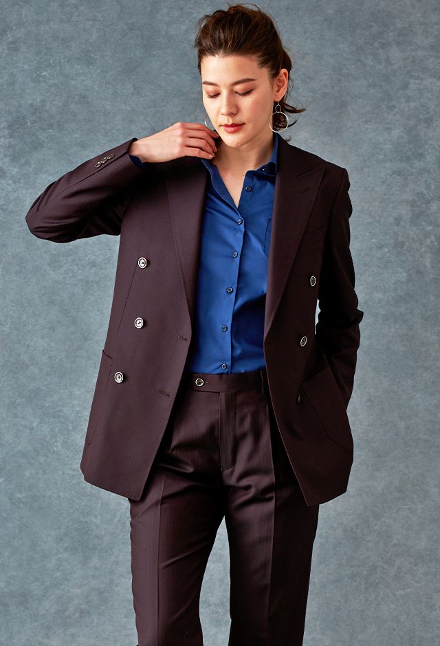 イタリアの高級生地ブランド「ゼニア」で仕立てたスーツです。赤みがかったブラウンの無地の生地で、オールシーズン着用していただけます。英国の”今”を感じさせるモダンブリティッシュモデル(ダブル)で仕立てました。アウトポケットオプションで重くなりがちなダブルのジャケットを軽やかな印象に。ブラウンと相性の良いブルーをインナーに合わせた、メンズライクコーデに仕上げました。※こちらはメンズモデルでお仕立てしたスーツになります。※生地在庫は変動いたしますのでご了承くださいませ。