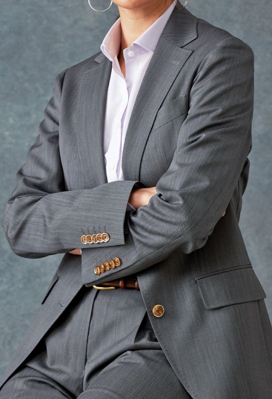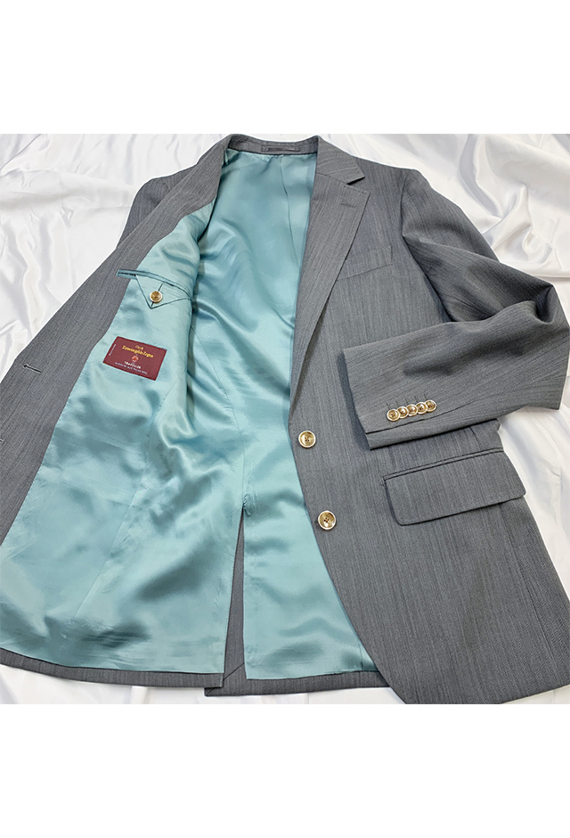 イタリアの高級生地ブランド「ゼニア」で仕立てたスーツです。クールな印象のミディアムグレーの無地の生地で、オールシーズン着用していただけます。肩パットや芯地を極力排したアンコンモデルでジャケットを仕立てました。パンツのウエストにはワンタック仕様をチョイスして、クラシカルな印象に。銀縁のボタンで細部も上質な仕上がり。落ち着いた印象のスーツに合わせ、襟のあるシャツをチョイス。メンズライクに仕上げました。※こちらはメンズモデルでお仕立てしたスーツになります。※生地在庫は変動いたしますのでご了承くださいませ。