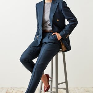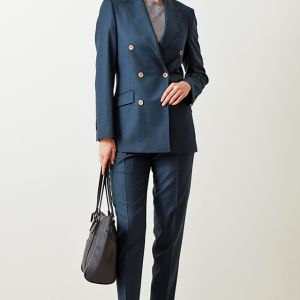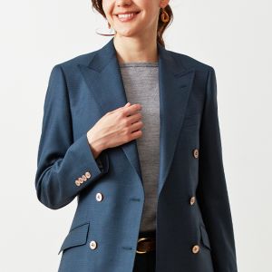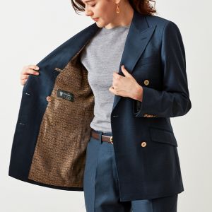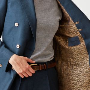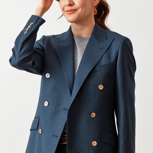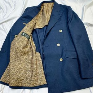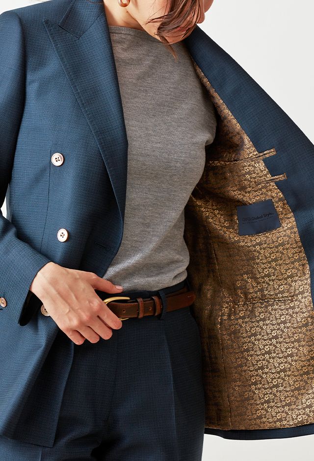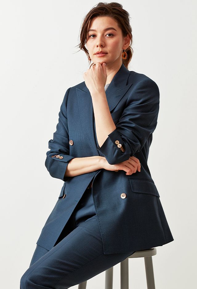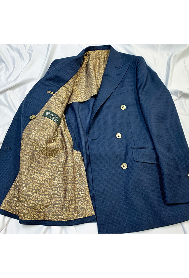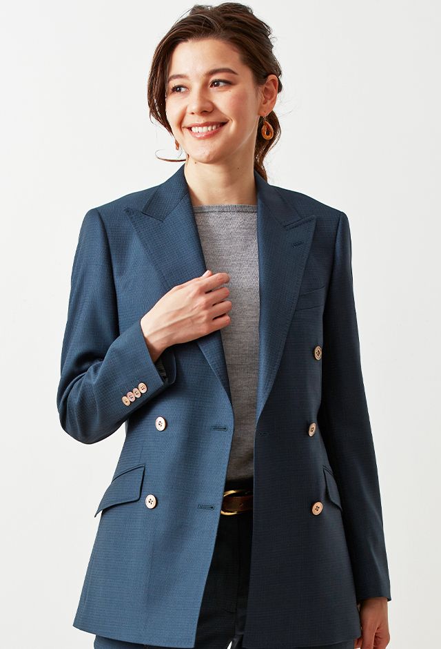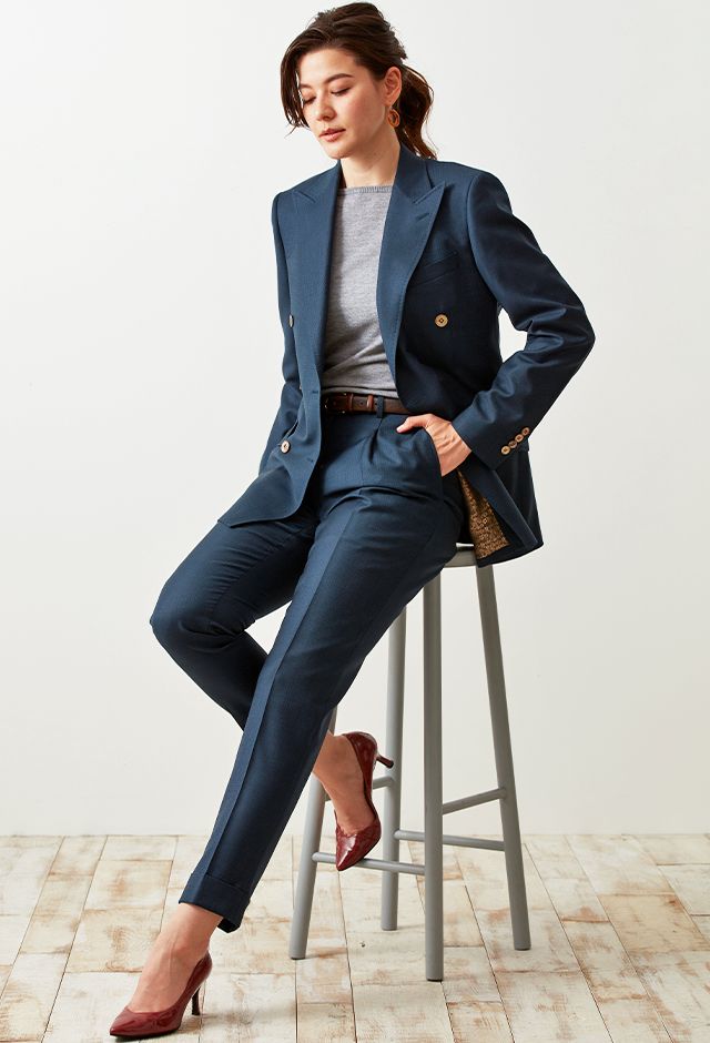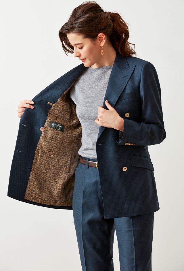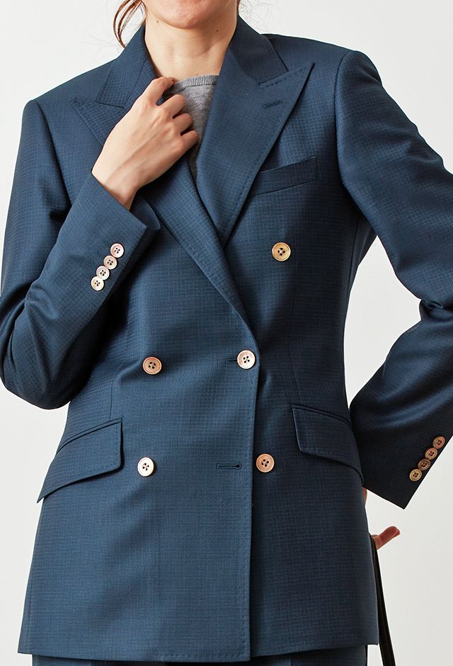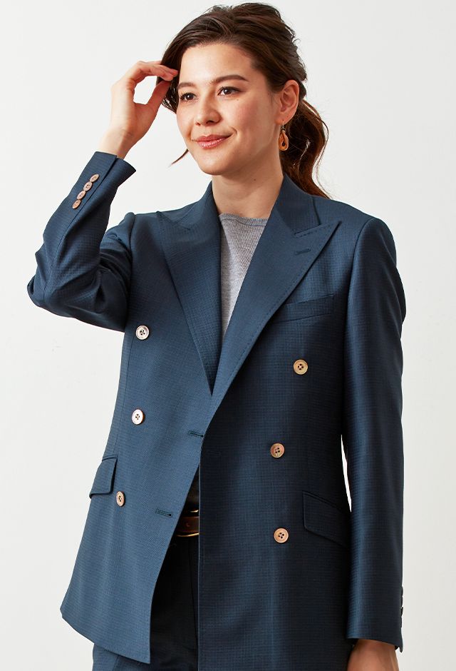 80ケ国以上にファンを持つ世界的なイギリスブランド「ドーメル」で仕立てたスーツです。青味のあるグリーンにさりげない細かなチェック柄が入った、春夏シーズンの生地になります。英国の”今”を感じさせるモダンブリティッシュモデル(ダブル)で仕立てました。ポケットは斜め(スラント)にすることでシャープな印象に仕上がります。グレーのニットを合わせ、落ち着いた印象のコーデに仕上げました。※こちらはメンズモデルでお仕立てしたスーツになります。※生地在庫は変動いたしますのでご了承くださいませ。