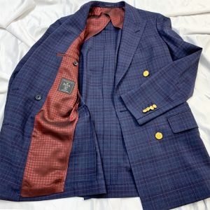 クラシカルからファンシーなデザインまで幅広く生み出すイタリアブランド「レダ」で仕立てたスーツです。ネイビーをベースに、濃淡の違う同系色でチェック柄があしらわれた生地でオールシーズン着用していただけます。英国の”今”を感じさせるモダンブリティッシュモデル(ダブル)で仕立てました。金のメタルボタンをチョイスして、アイビールックを思わせるジャケットに。パンツには薄めのチェックで統一感を出したカジュアルコーデに仕上げました。※こちらのジャケットはメンズモデルでお仕立てしたものになります。※生地在庫は変動いたしますのでご了承くださいませ。