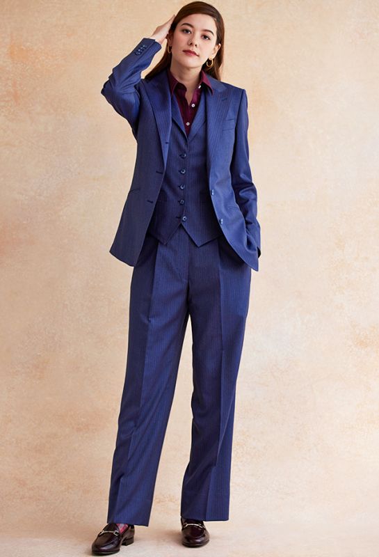 80ケ国以上にファンを持つ世界的なイギリスブランド「ドーメル」で仕立てたスーツです。ネイビーに大胆なチェック柄が印象的なスタイルで、秋冬シーズンの生地になります。英国の”今”を感じさせるモダンブリティッシュモデル(ダブル)で仕立てました。秋冬に最適な温かみのある生地感。アウトポケットをチョイスし、重くなりがちなダブルジャケットの印象を軽やかに。スリーピーススタイルでメンズライクな印象に仕上げました。※こちらはメンズのモデルでお仕立てしたスーツになります。※生地在庫は変動いたしますのでご了承くださいませ。