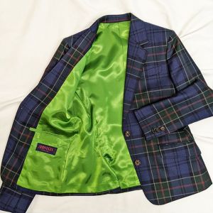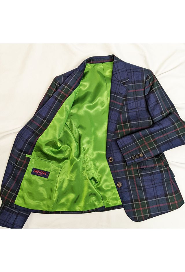 ファッション性が高くお洒落な生地が豊富な「アリストン」で仕立てたスーツです。ネイビーをベースにグリーンやレッドを使用したインパクトのあるチェック柄が印象的なスタイルで、オールシーズン着用していただけます。ジャケットはテーラーギビングモデル(2つボタン)、ボトムスはクールなセミフレアパンツで仕立てました。ポケットは最もオーソドックスなフラップが付いた平行タイプを採用し裏地には存在感のあるグリーンをチョイス。インナーにはトーンを抑えたライトグレーを合わせ、スーツのチェック柄を引き立てたコーデに仕上げました。※生地在庫は変動いたしますのでご了承くださいませ。