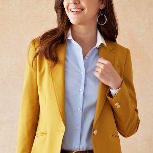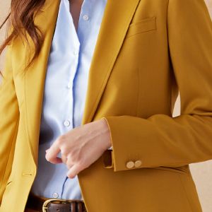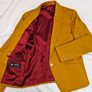 80ケ国以上にファンを持つ世界的なイギリスブランド「ドーメル」で仕立てたスーツです。発色の良いオレンジの無地のスタイルで、オールシーズン着用していただけます。ジャケットはテーラーギビングモデル(1つボタン)、ボトムスは人気のテーパードパンツで仕立てました。存在感があり、発色も美しいゴールドのメタルボタンをチョイス。インナーや小物アイテムはシンプルにまとめることで、スーツの絶妙なカラーが際立つコーデです。※生地在庫は変動いたしますのでご了承くださいませ。