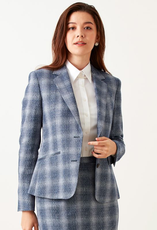 ストレッチ性の高い生地が大好評のイタリアブランド「トラバルド・トーニャ」で仕立てたスーツです。どんな小物アイテムも合わせやすいホワイトカラーのスタイルで、オールシーズン着用していただけます。ジャケットはテーラーギビングモデル(2つボタン)、ボトムスは定番のスカートで仕立てました。スーツのカラーに合わせて裏地やボタンはホワイトカラーをチョイス。ニットはシンプルに、彩りのあるスカーフを組み合わせて女性らしい雰囲気に仕上げました。※生地在庫は変動いたしますのでご了承くださいませ。