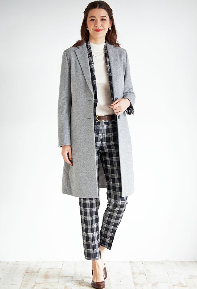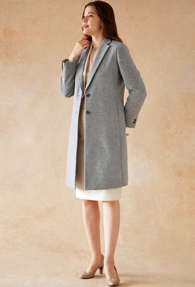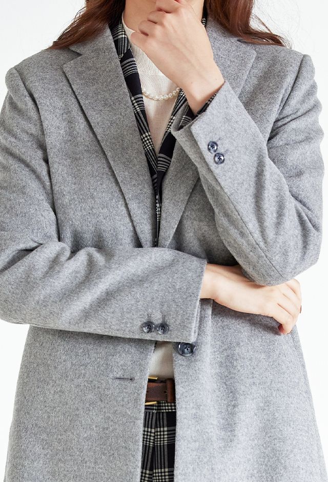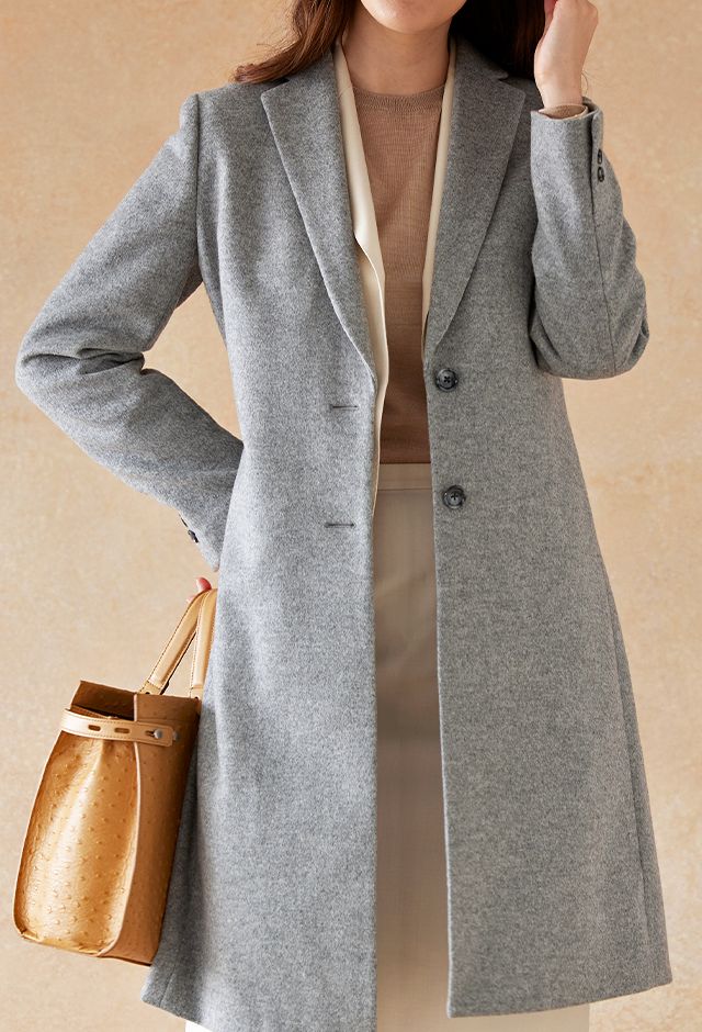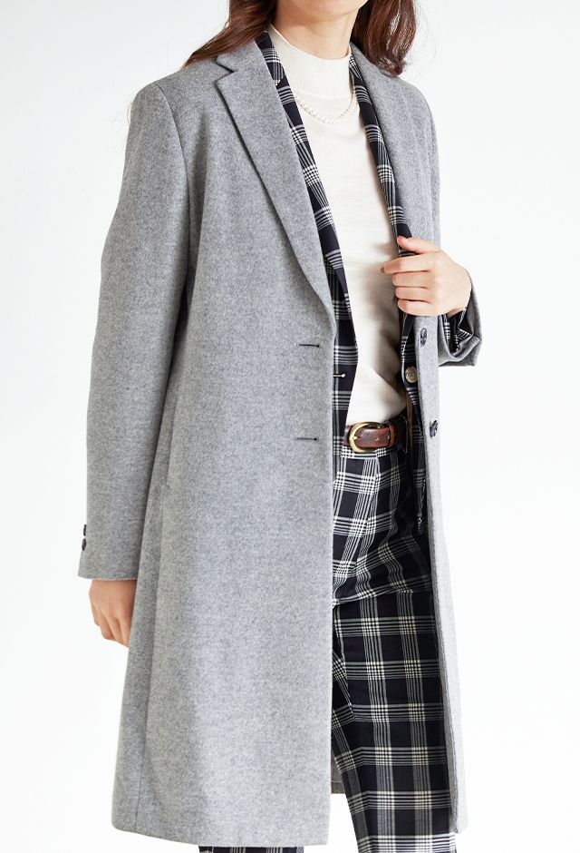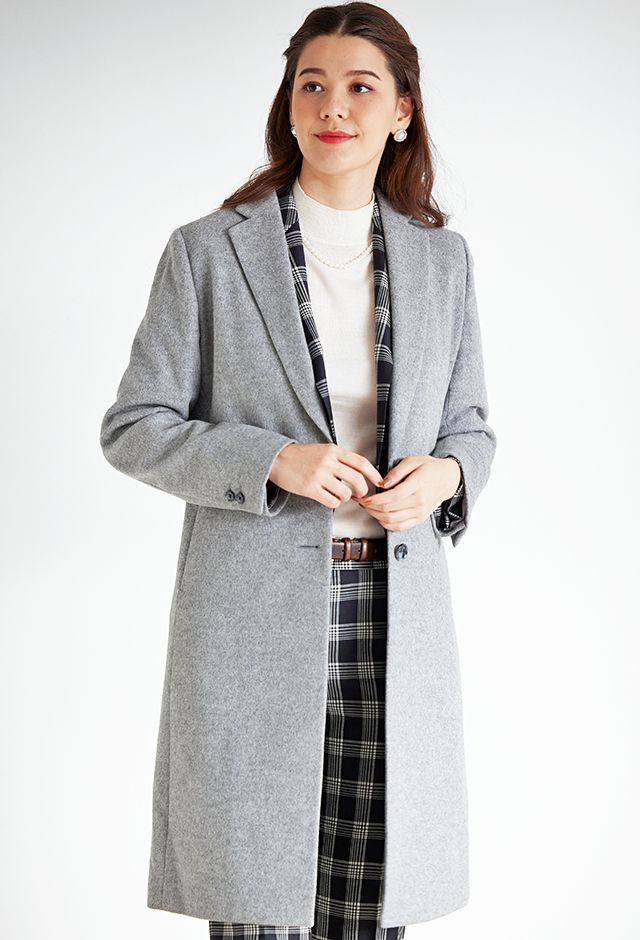 グローバルスタイルがセレクトした生地コレクションで仕立てたコートです。無地のグレースタイルで、上品でありながらカジュアルにも合わせることができる歴史のあるチェスターコートモデルに仕立てました。ボタンは黒を選び、使いやすい仕様に。さらにポケットの蓋をなくすことで、スッキリとした印象に。パンツ・スカートともに着回しやすいデザイン。幅広く着用でき、一着持っておくと安心なコートです。※画像はイメージです。実際の生地と若干風合いが異なることがございますので、店頭でご覧くださいませ。※生地在庫は変動いたしますのでご了承くださいませ。