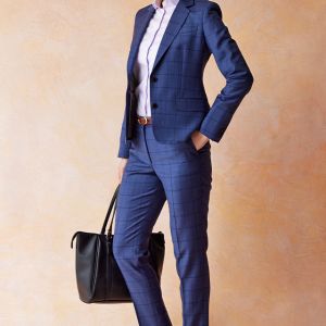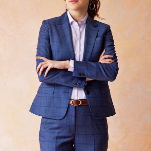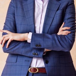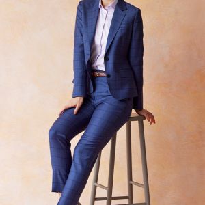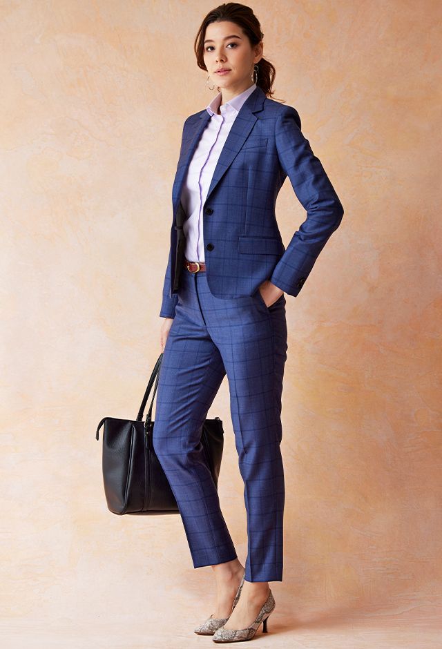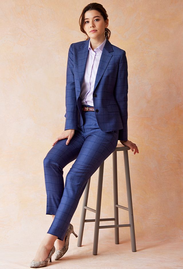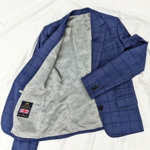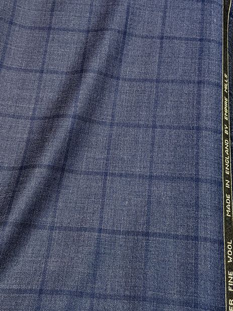 英国でクオリティーとコストパフォーマンスの高い生地を生産する「エンパイア・ミルズ」で仕立てたスーツです。明るいトーンのブルーカラーにウィンドウペンのざっくりとしたチェックが特徴的なスタイルで、オールシーズン着用していただけます。ジャケットはテーラーギビングモデル(2つボタン)、ボトムスは人気のテーパードパンツで仕立てました。ポケットは最もオーソドックスなフラップが付いた平行タイプ。相性の良いパープルカラーのシャツと組み合わせたバランスの良いコーデです。※生地在庫は変動いたしますのでご了承くださいませ。